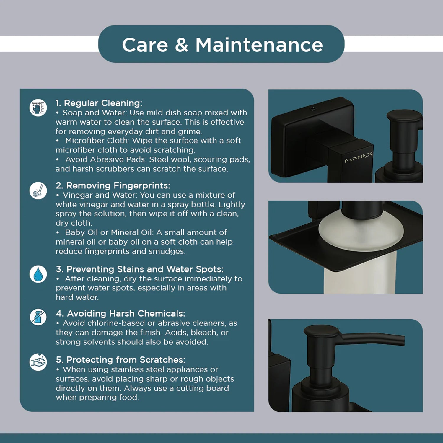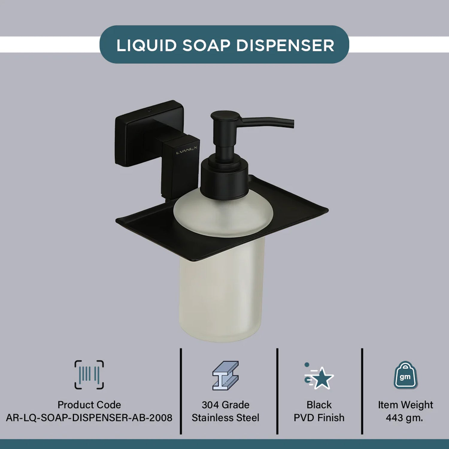 Evanex Stainless Steel Black Matt Liquid Soap Dispenser for Bathroom (12.4X12.3X15.5 CM)