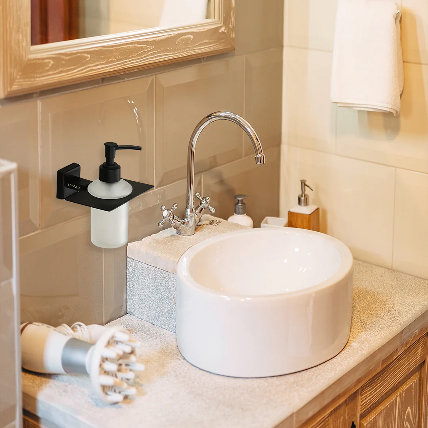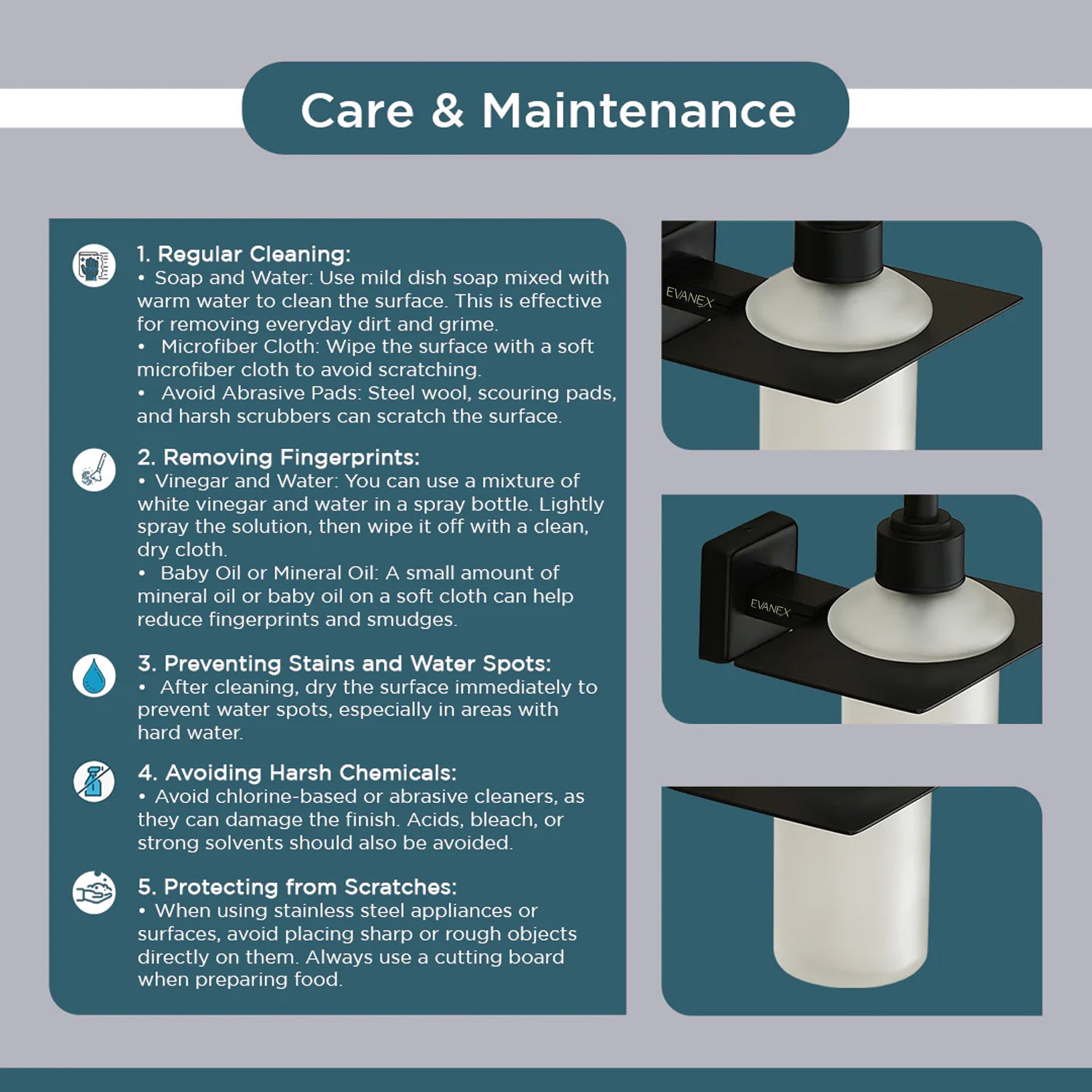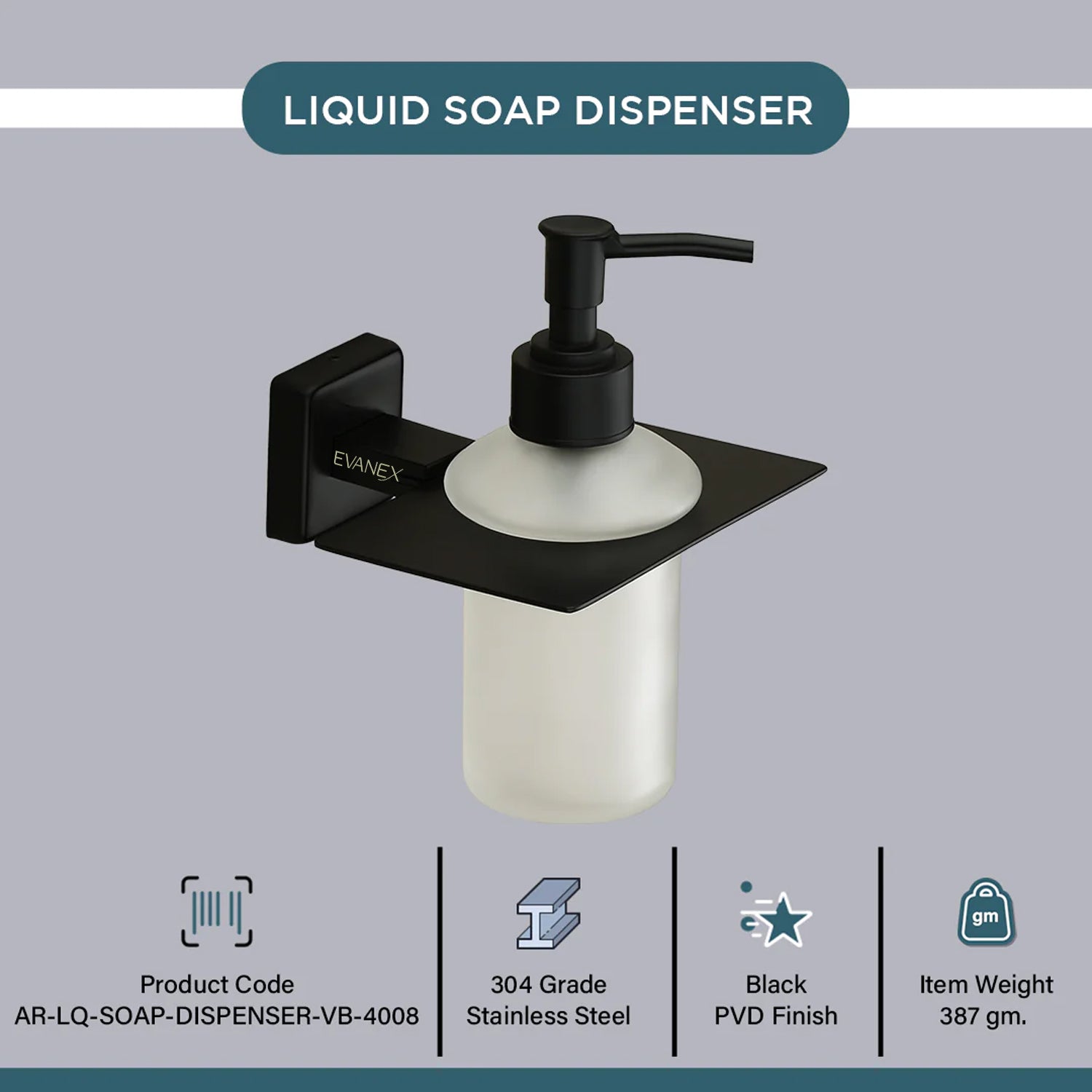 Evanex Stainless Steel Black Matt Liquid Soap Dispenser for Bathroom (12X12.3X15.5 CM)