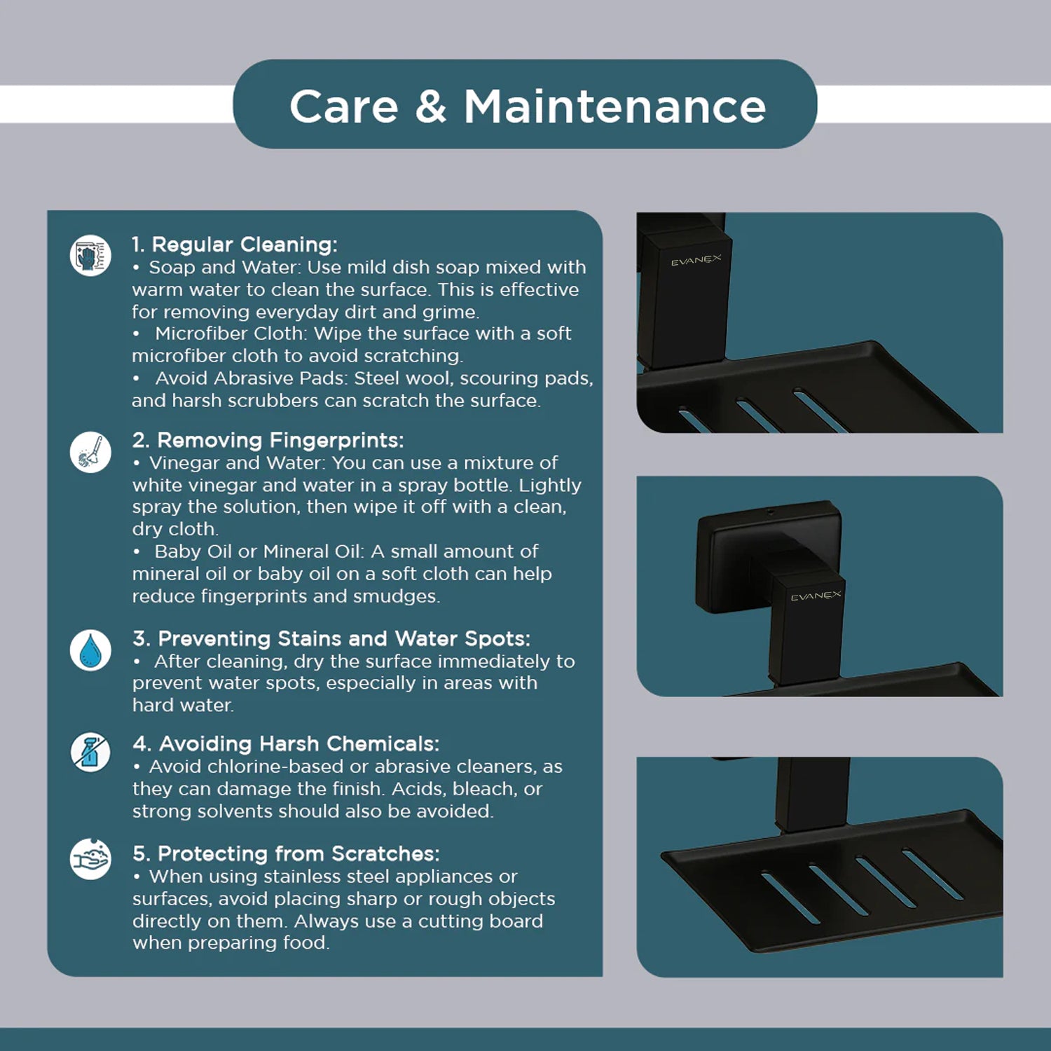 Evanex Stainless Steel Black Matt Soap Dish for Bathroom (12.4X12.3X5.4 CM)