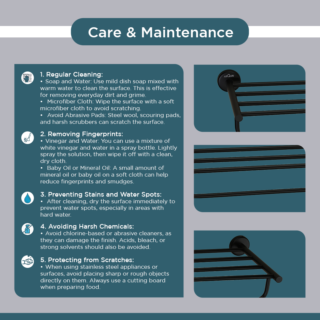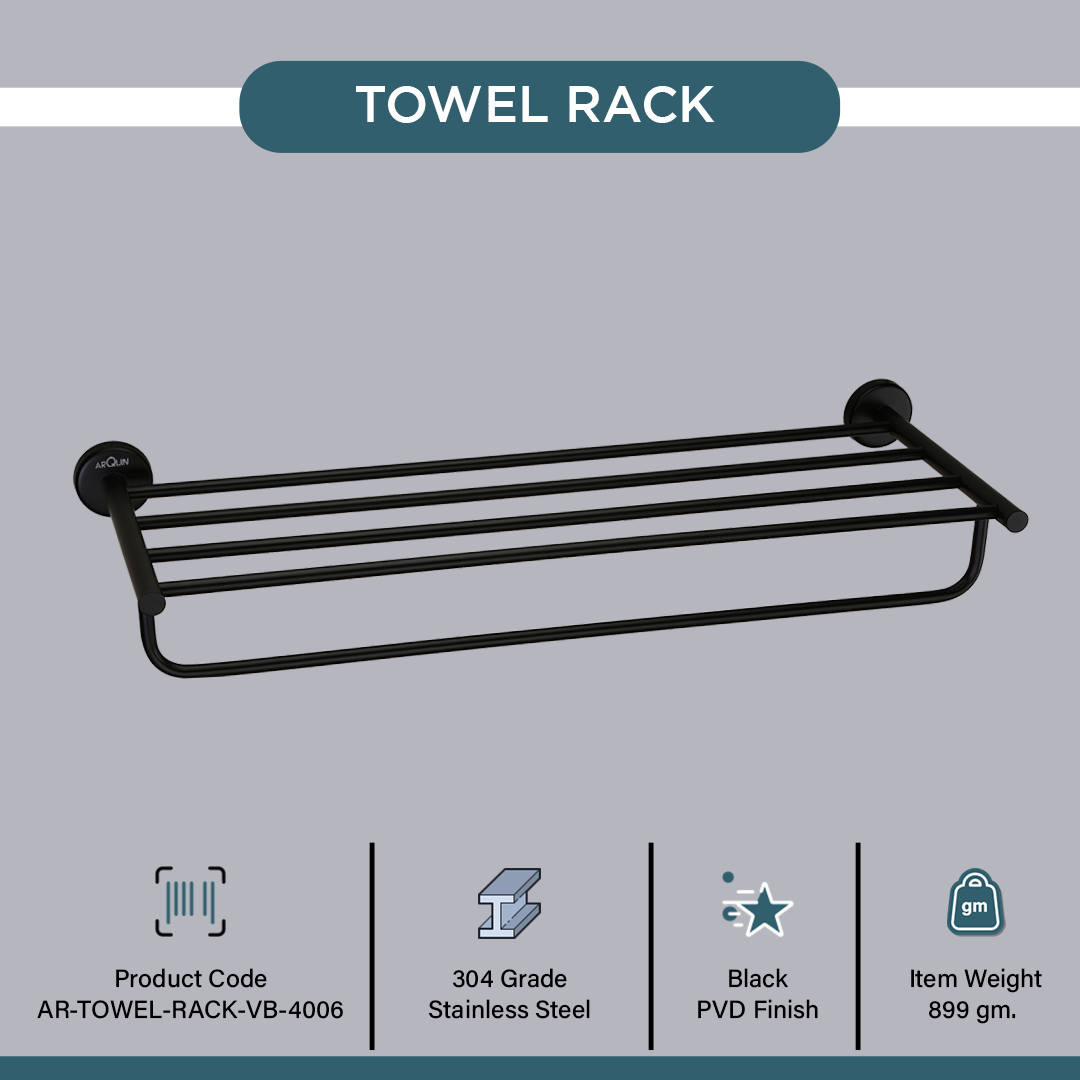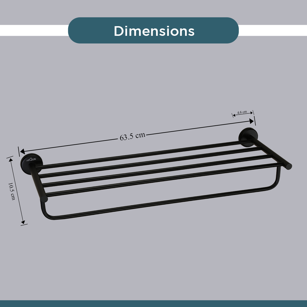 Evanex Stainless Steel Black Matt Towel Rack for Bathroom (63.5X22X10.5 CM)