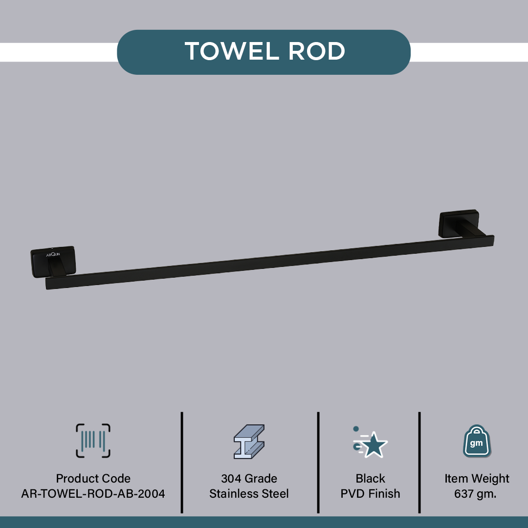 Evanex Stainless Steel Black Matt Towel Rod/Hanger for Bathroom (61X7.2X3.6 CM)