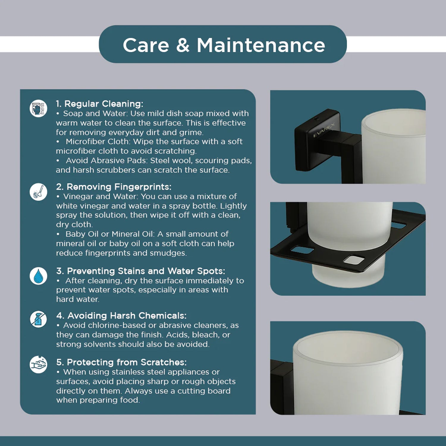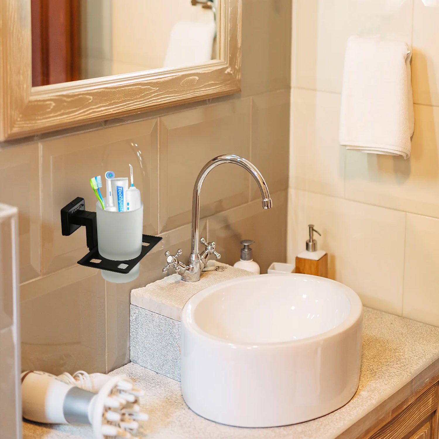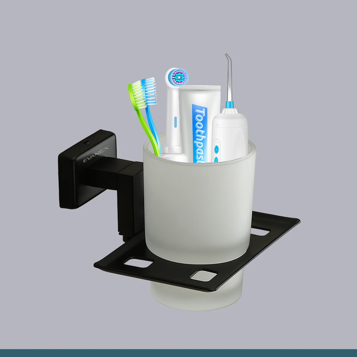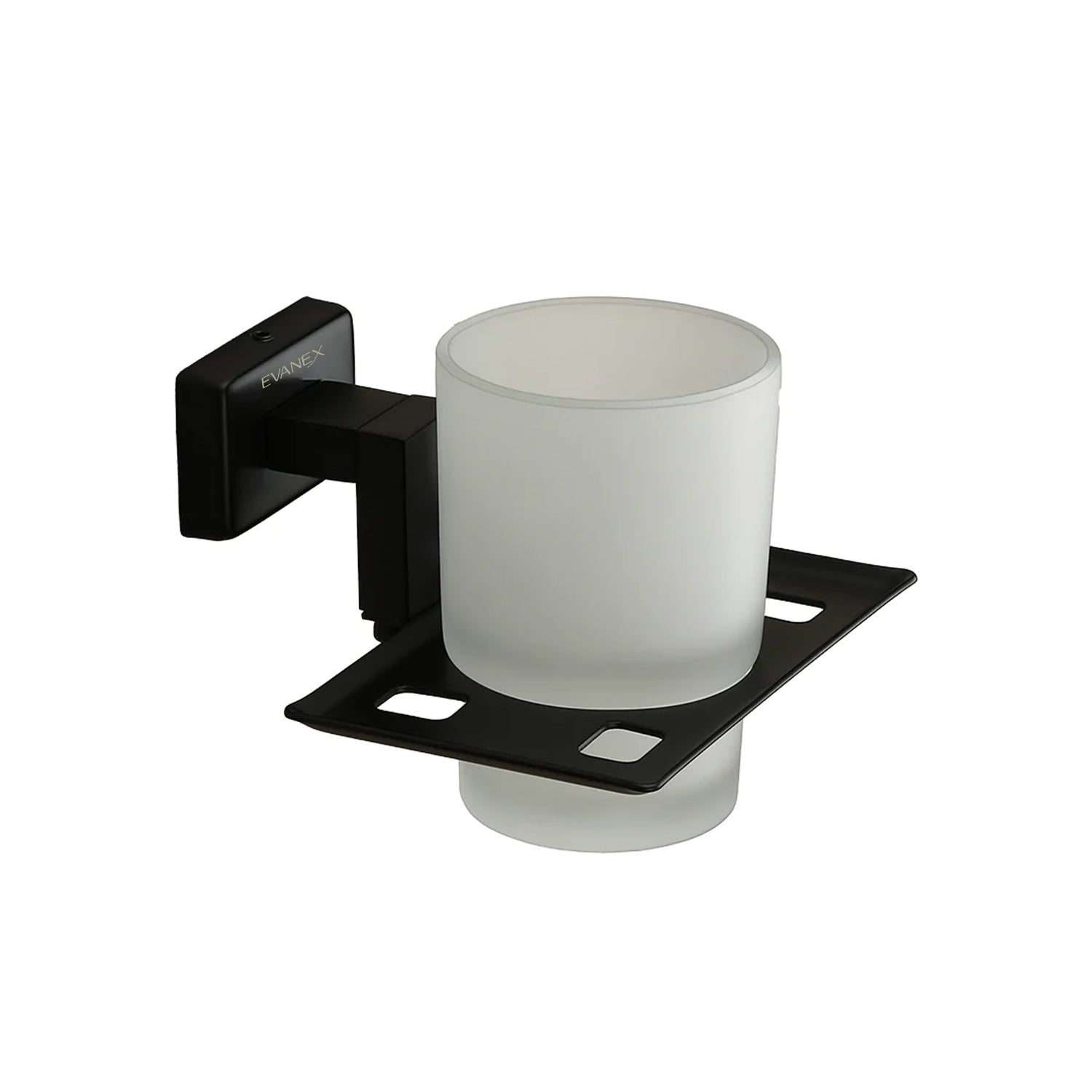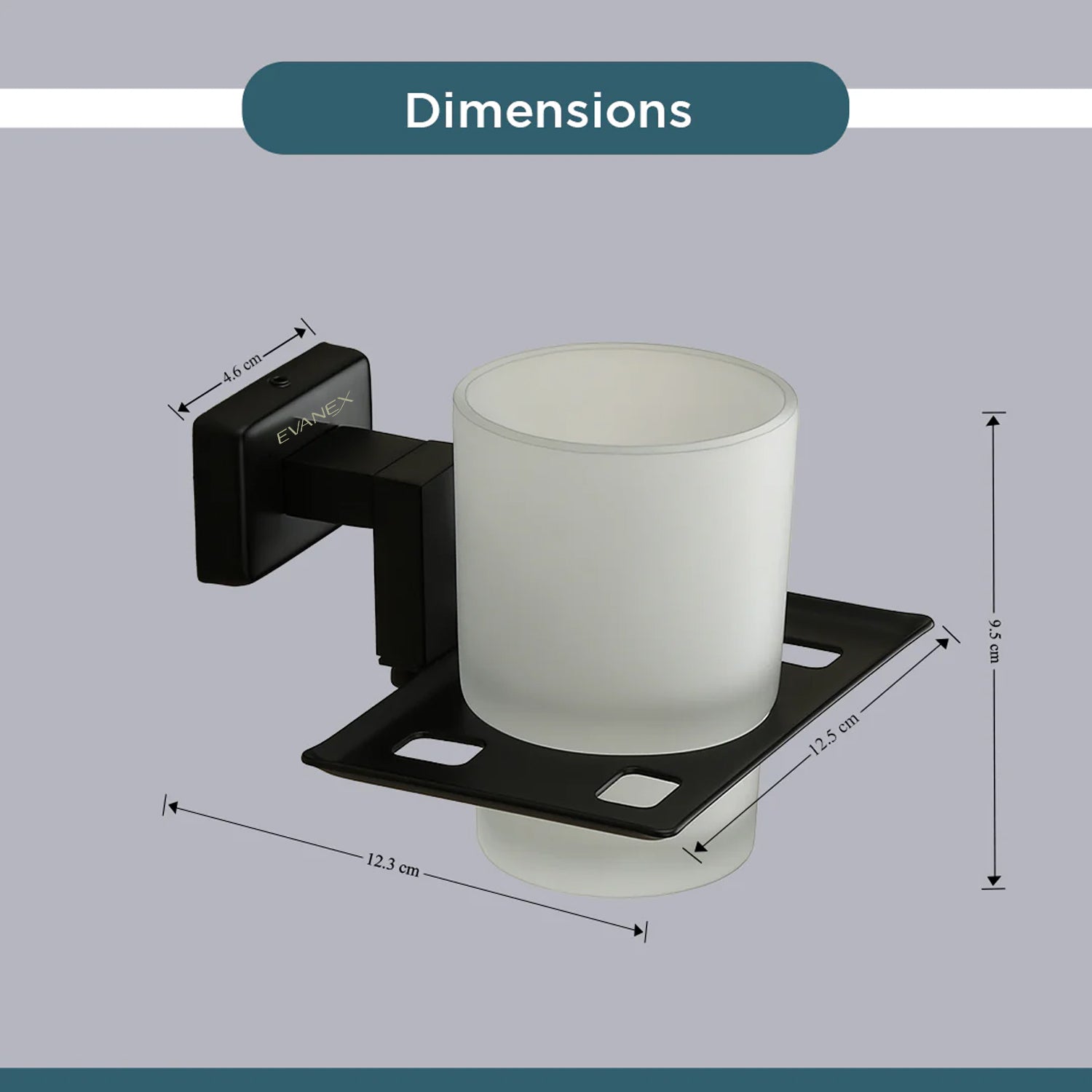 Evanex Stainless Steel Black Matt Tumbler Holder for Bathroom (12.4X12.3X9.5 CM)