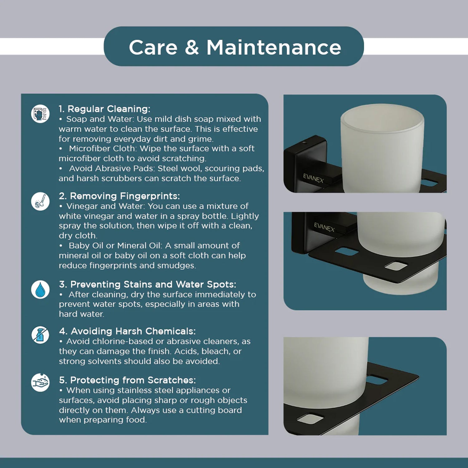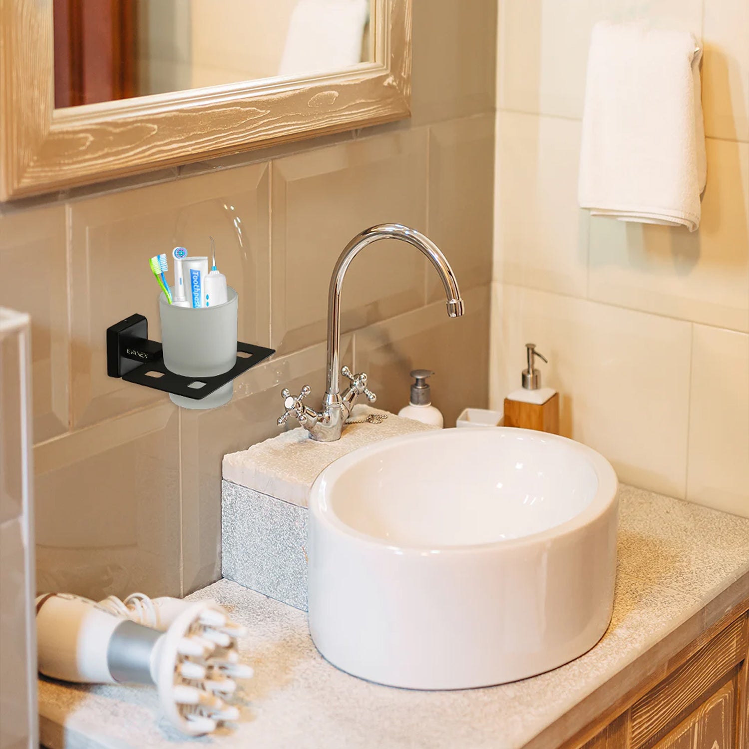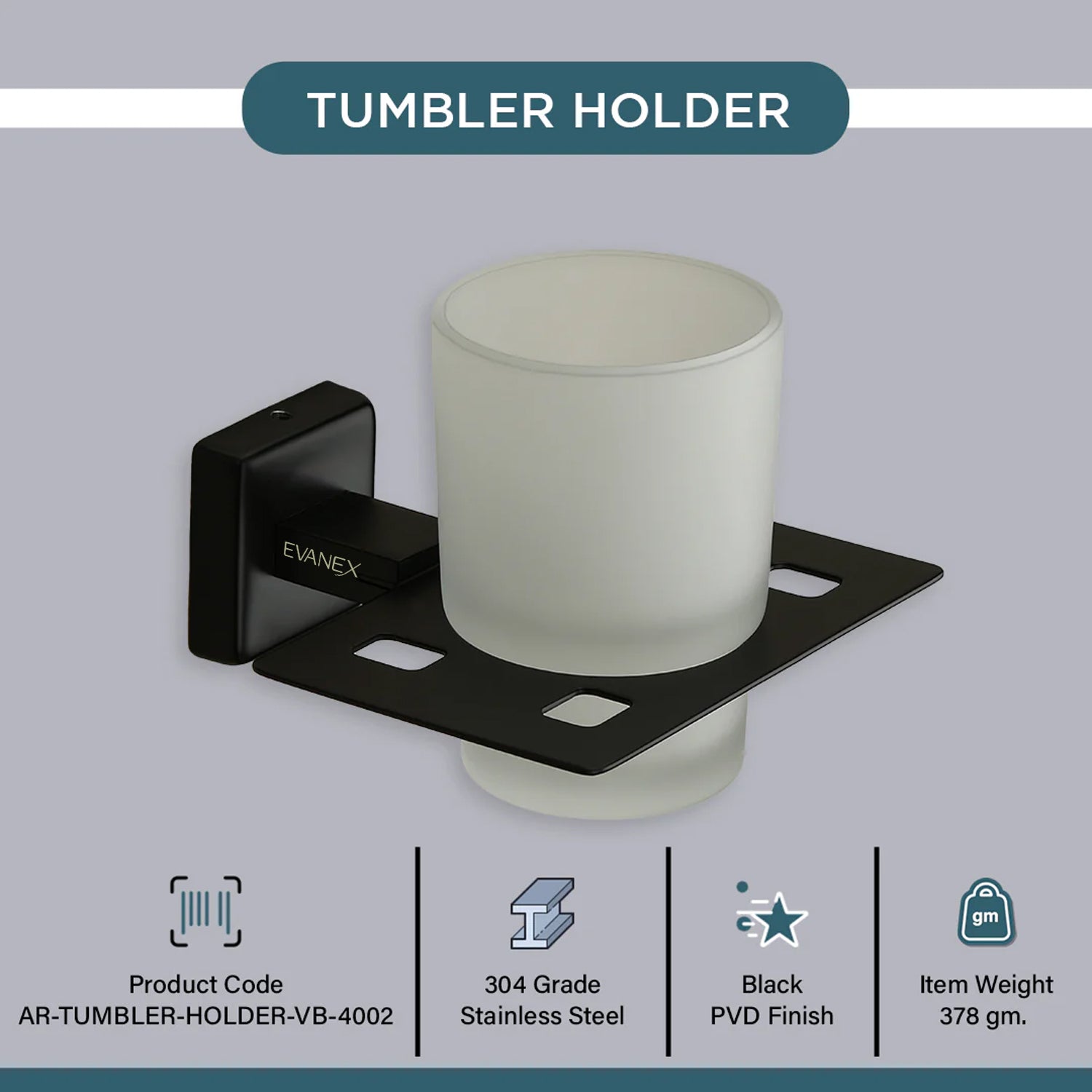 Evanex Stainless Steel Black Matt Tumbler Holder for Bathroom (12.5X12.3X9.5 CM)