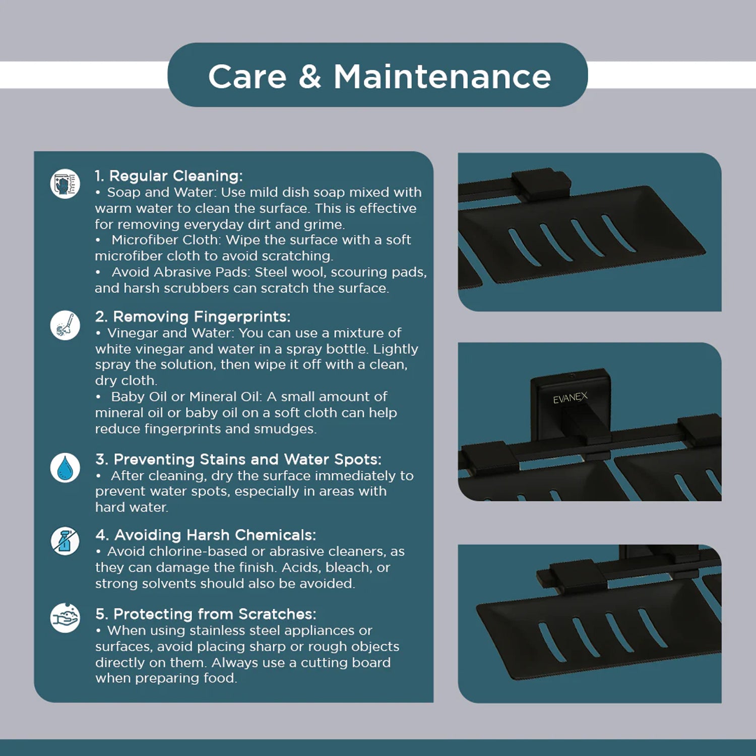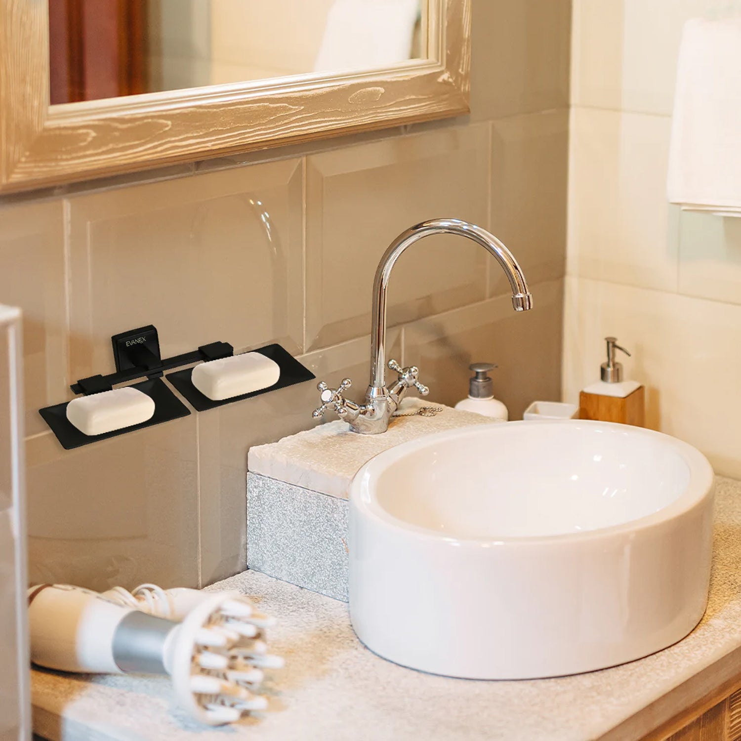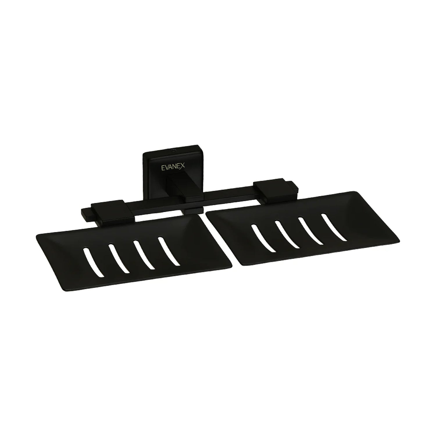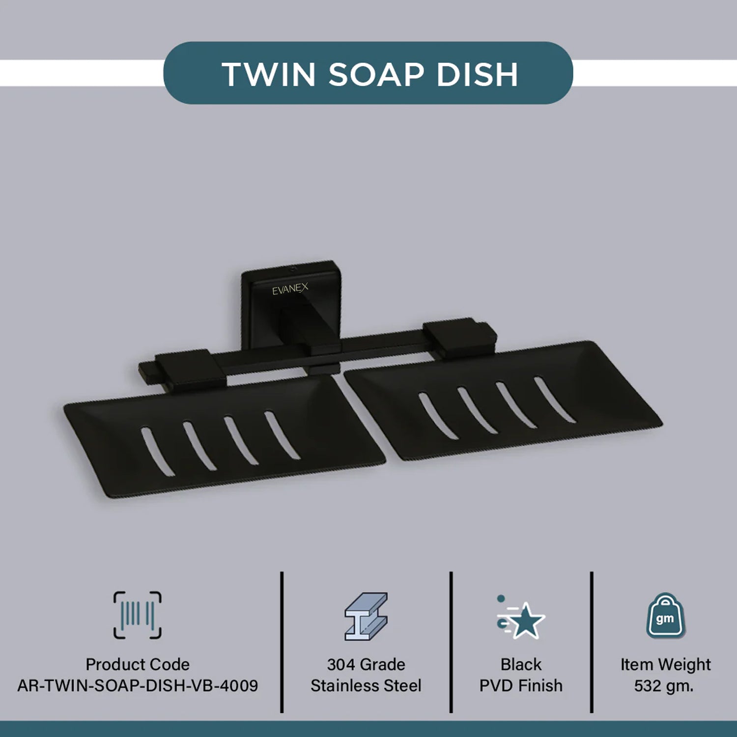 Evanex Stainless Steel Black Matt Twin Soap Dish for Bathroom (25.3X15X4.6 CM)