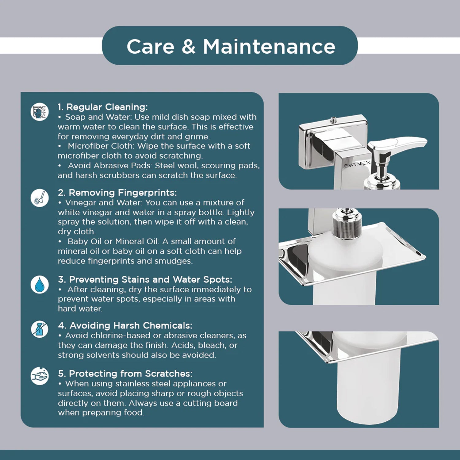Evanex Stainless Steel Chrome Liquid Soap Dispenser for Bathroom (12.4X12.3X15.5 CM)