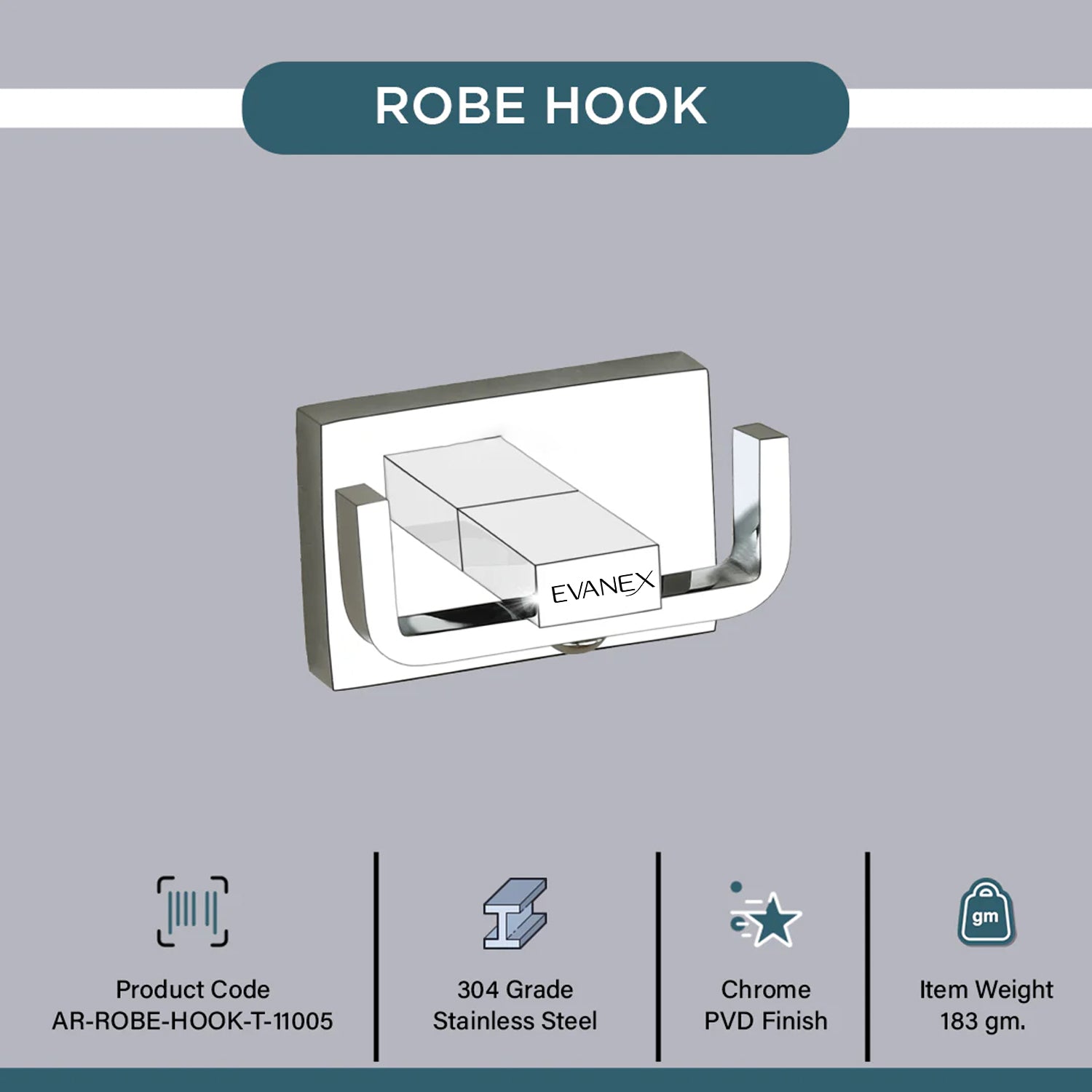 Evanex Stainless Steel Chrome Robe & Towel Hook for Bathroom (7.8X5X4 CM)