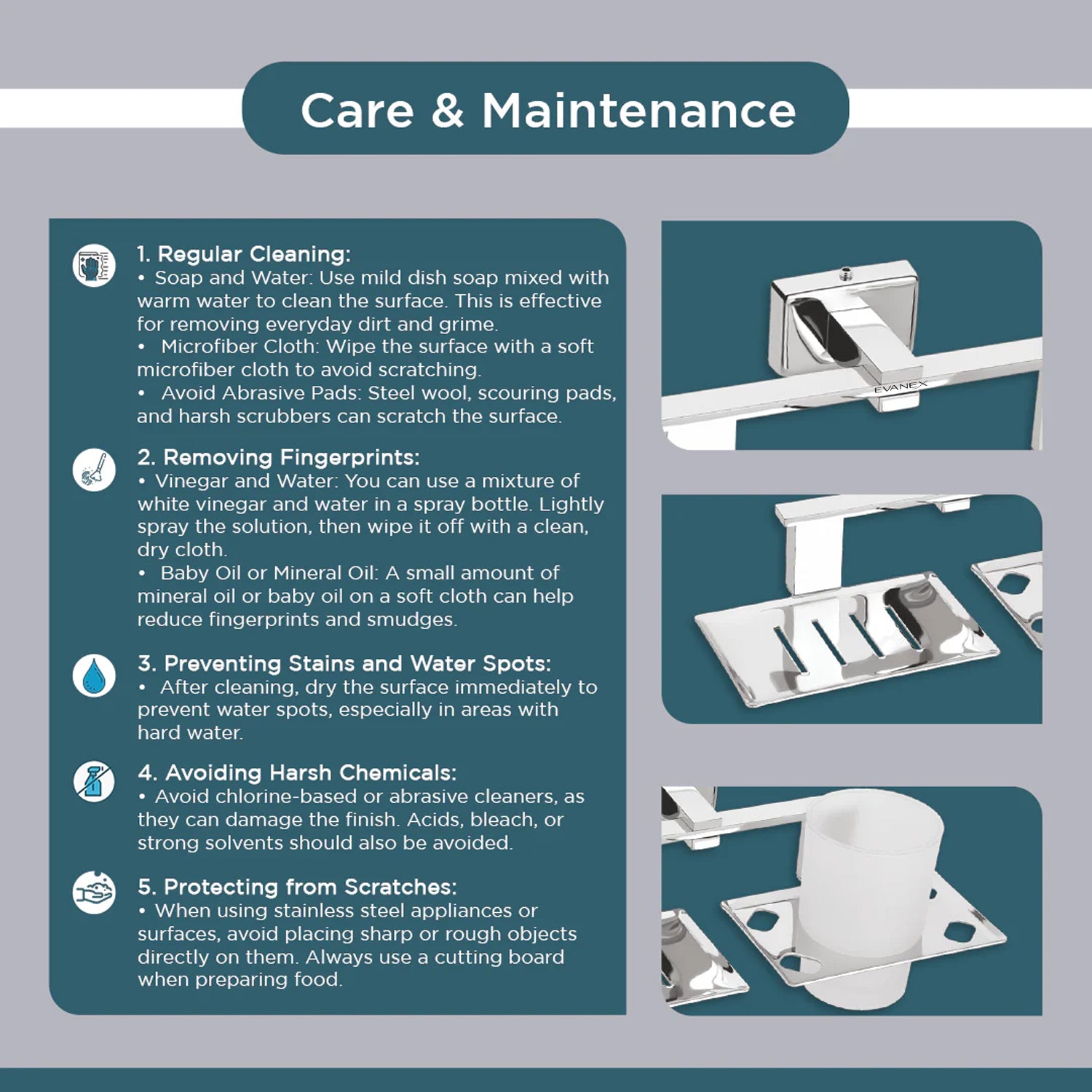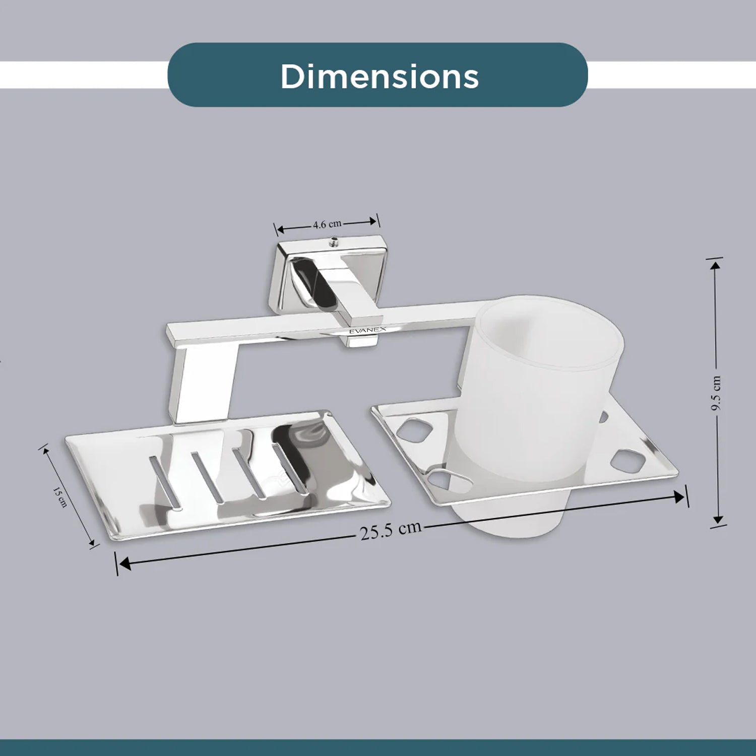 Evanex Stainless Steel Chrome Soap Dish & Tumbler Holder for Bathroom (25.8X13X9.5 CM)