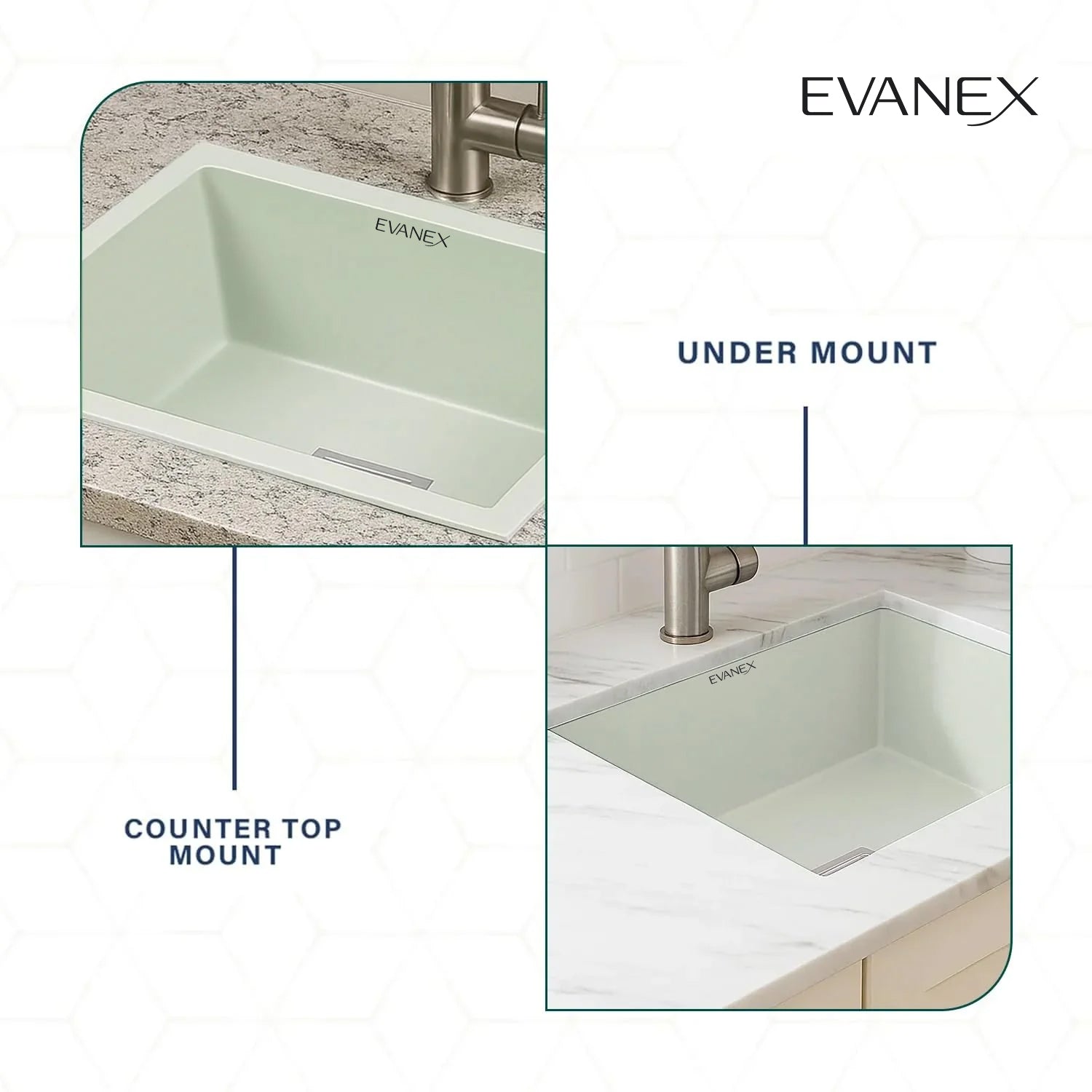 Quartz Single Bowl Kitchen Sink (24 x 18 x 9 Inches) ( Green)