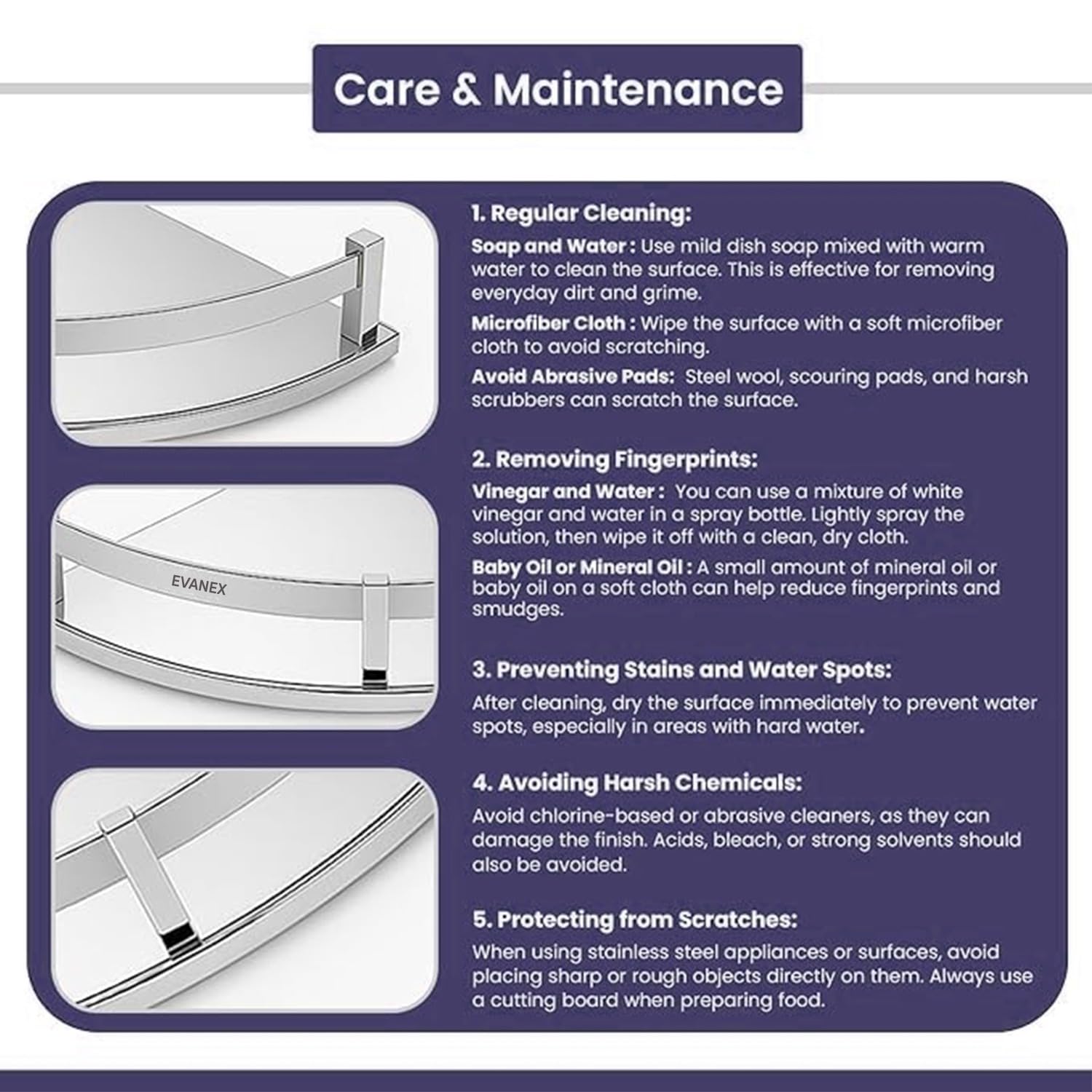 ๐ด๐๐๐๐๐๐๐๐๐๐๐ ๐ผ๐๐: Perfect for bathroom, kitchen, washroom, and toilet corners, Usage & Care: We recommend cleaning this bathroom corner rack with wet and dry clothes periodically to keep it shiny & long lasting.