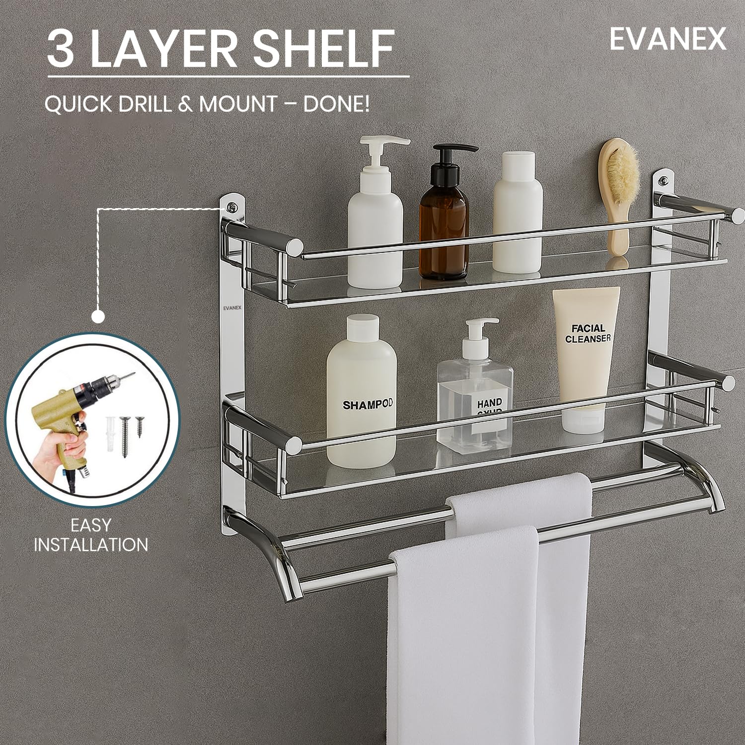 ๐๐๐๐ฏ๐ฒ ๐๐ซ๐๐๐ ๐๐ญ๐๐ข๐ง๐ฅ๐๐ฌ๐ฌ ๐๐ญ๐๐๐ฅ โ Evanex Bathroom Shelf Rust-resistant, durable, and built to last bathroom shelf is made from durable stainless steel material with Chrome finish which has anti-scratch, anti-rust and corrosion-proof properties.