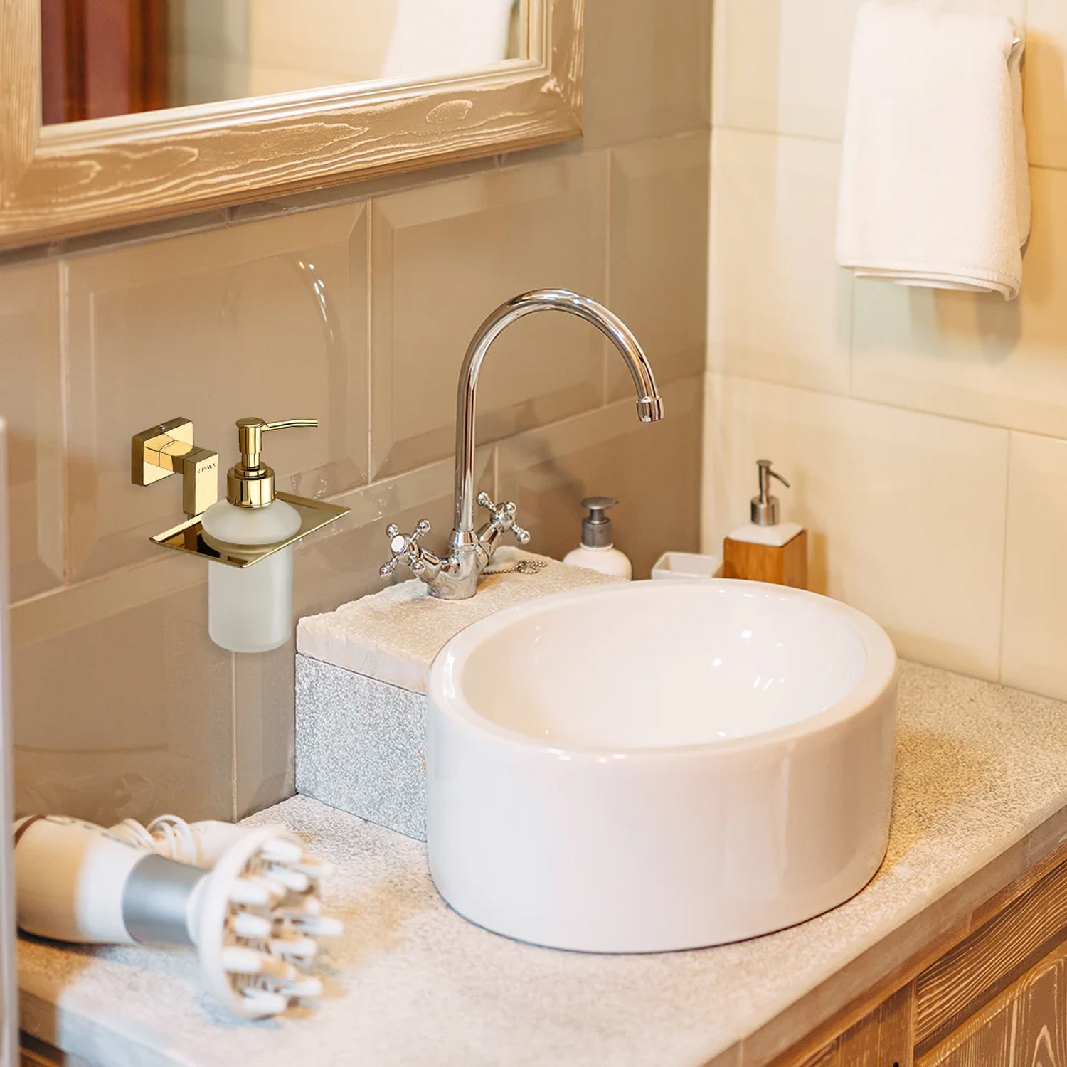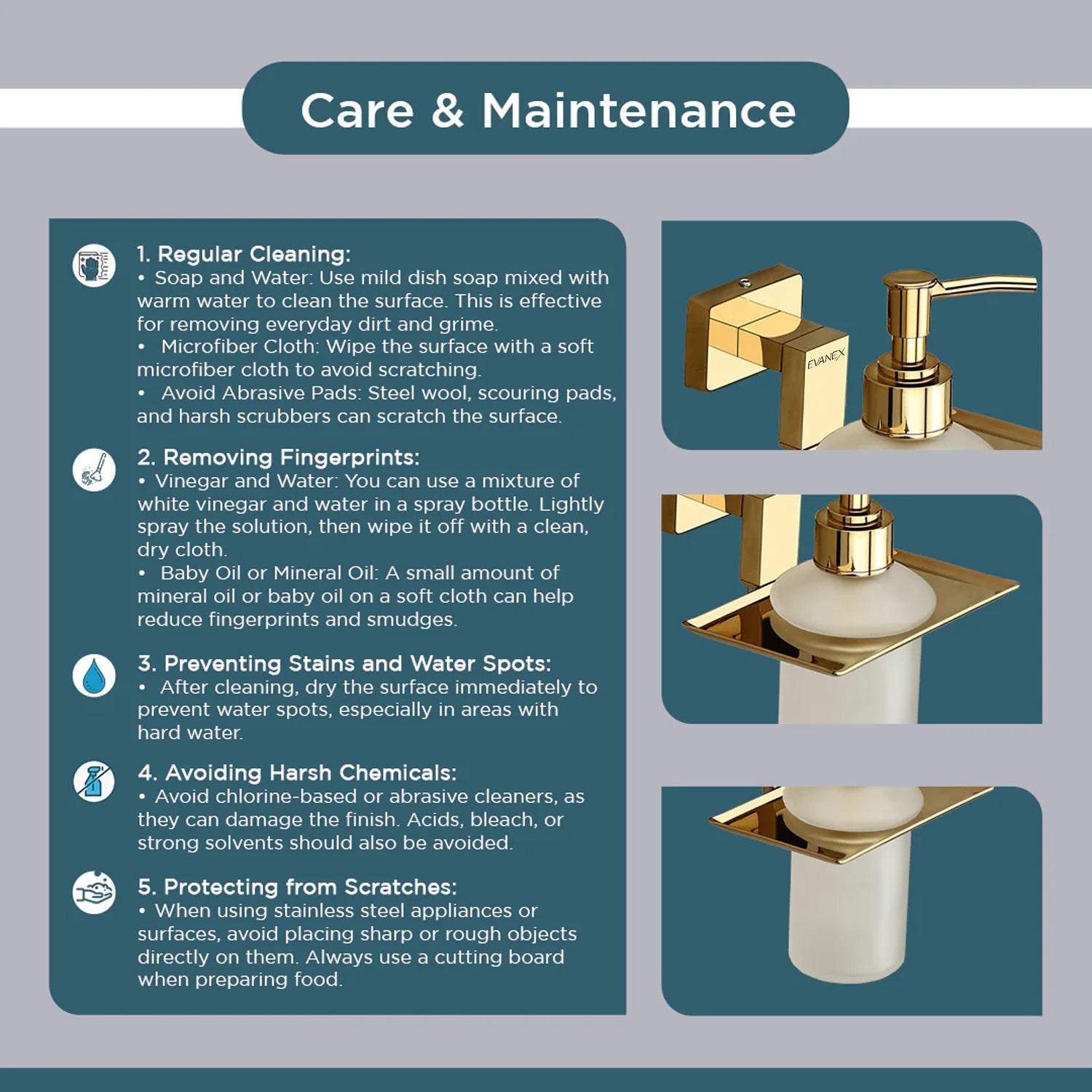 Evanex Stainless Steel Gold Liquid Soap Dispenser for Bathroom (12.4X12.3X15.5 CM)