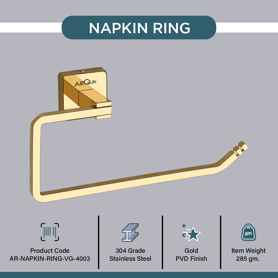 Evanex Stainless Steel Gold Napkin Ring for Bathroom (21.4X5.3X10.5 CM)