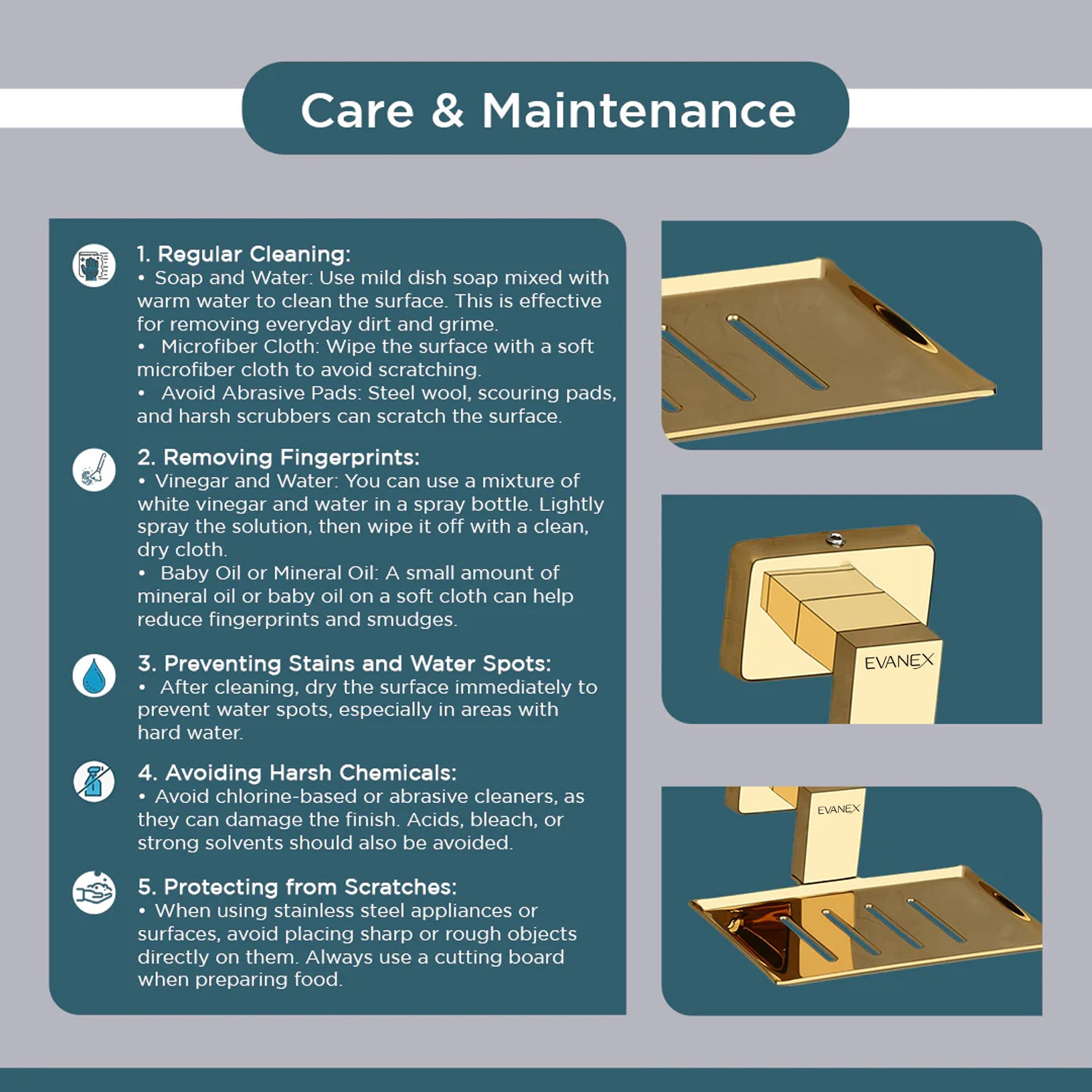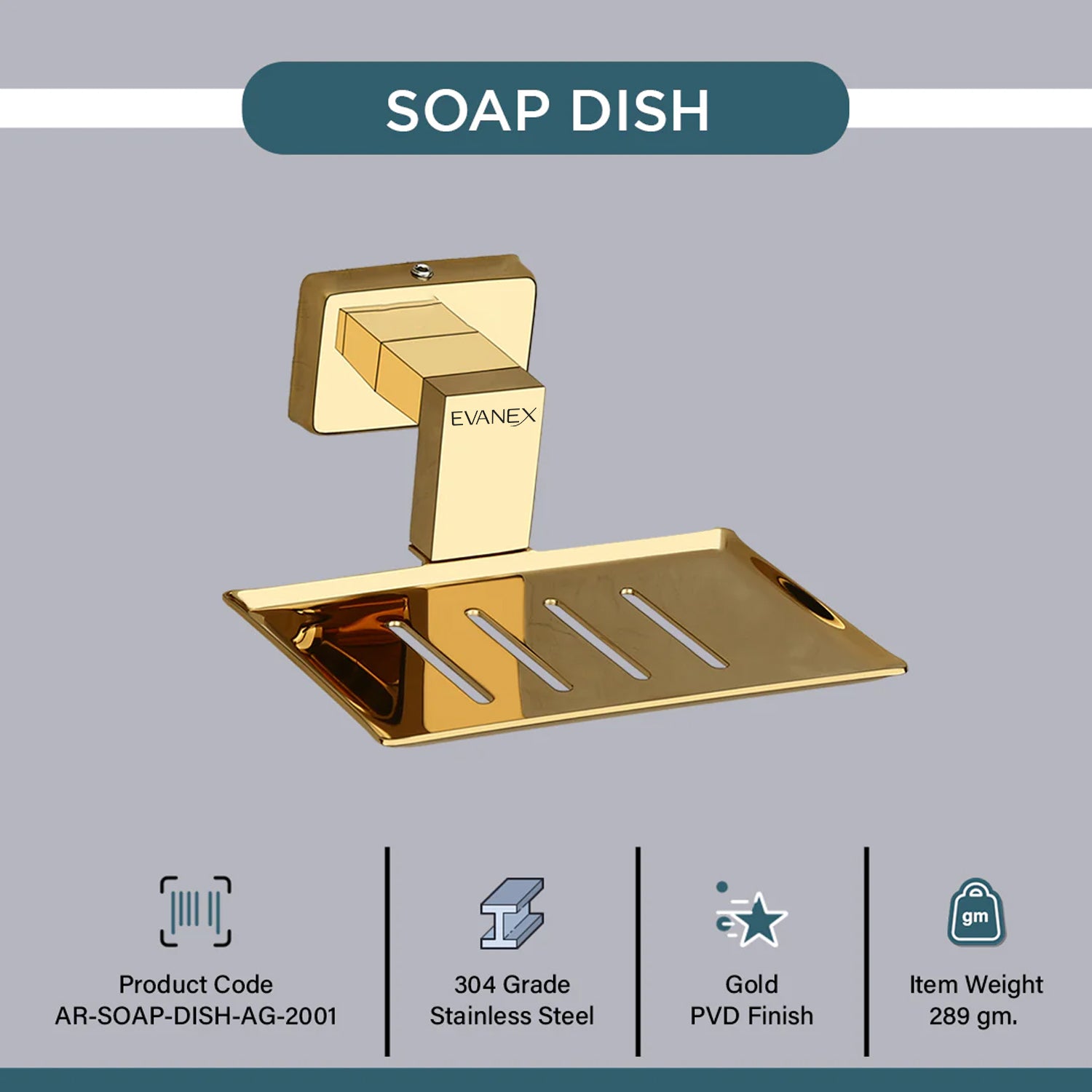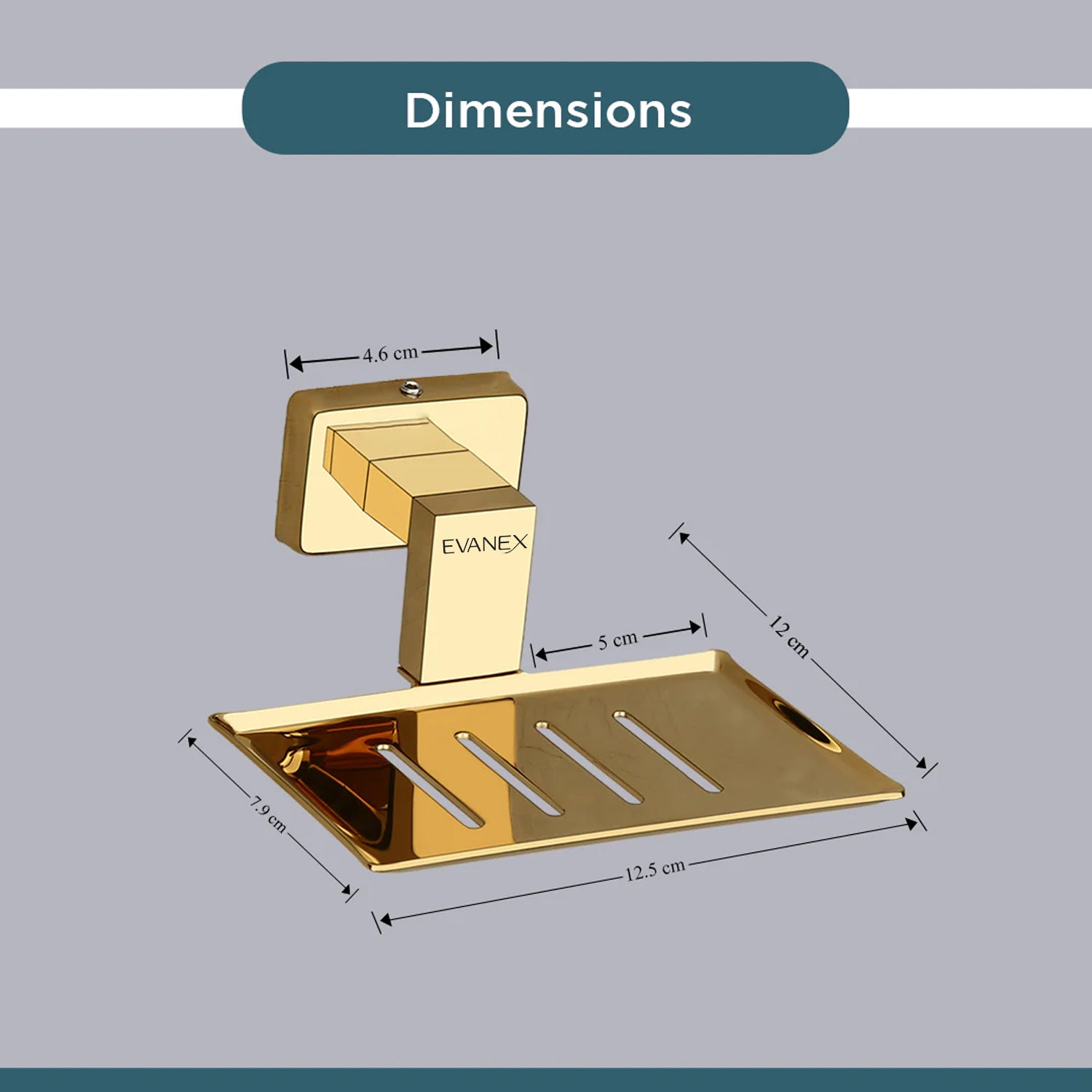 Evanex Stainless Steel Gold Soap Dish Holder for Bathroom (12.4X12.3X5.4 CM)