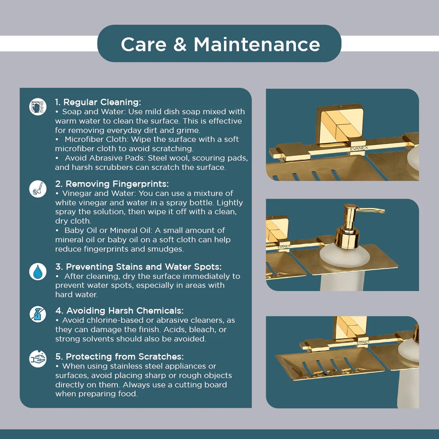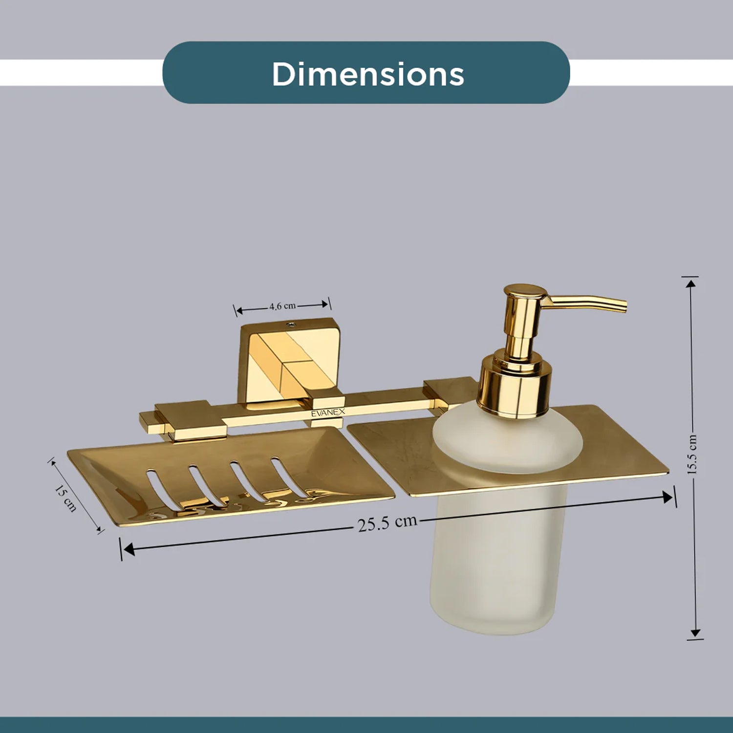 Evanex Stainless Steel Gold Soap Dish & Liquid Soap Dispenser for Bathroom (25.5X15X15.5 CM)