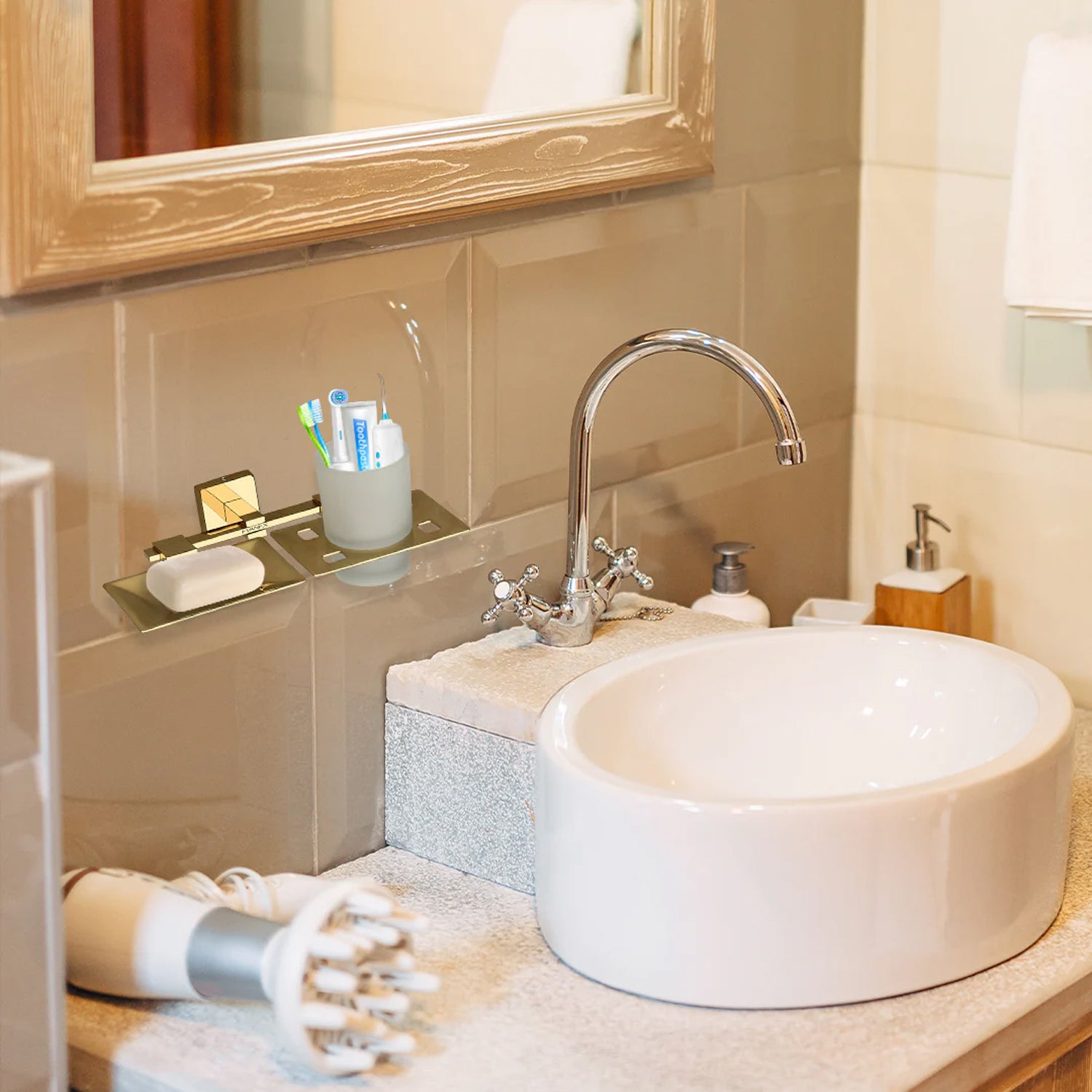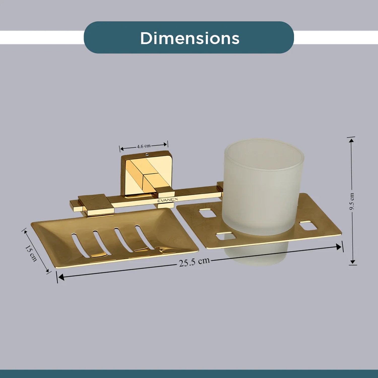 Evanex Stainless Steel Gold Soap Dish & Tumbler Holder for Bathroom (25.8X13X9.5 CM)