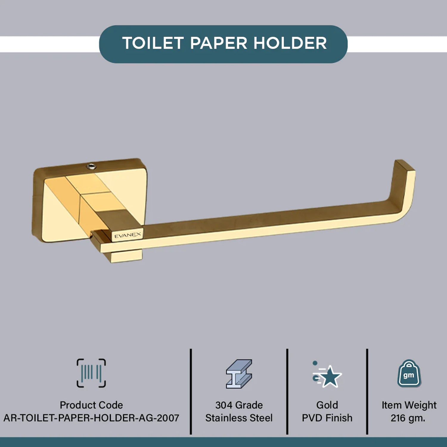 Evanex Stainless Steel Gold Toilet Paper Holder for Bathroom (17X5.2X4.3 CM)