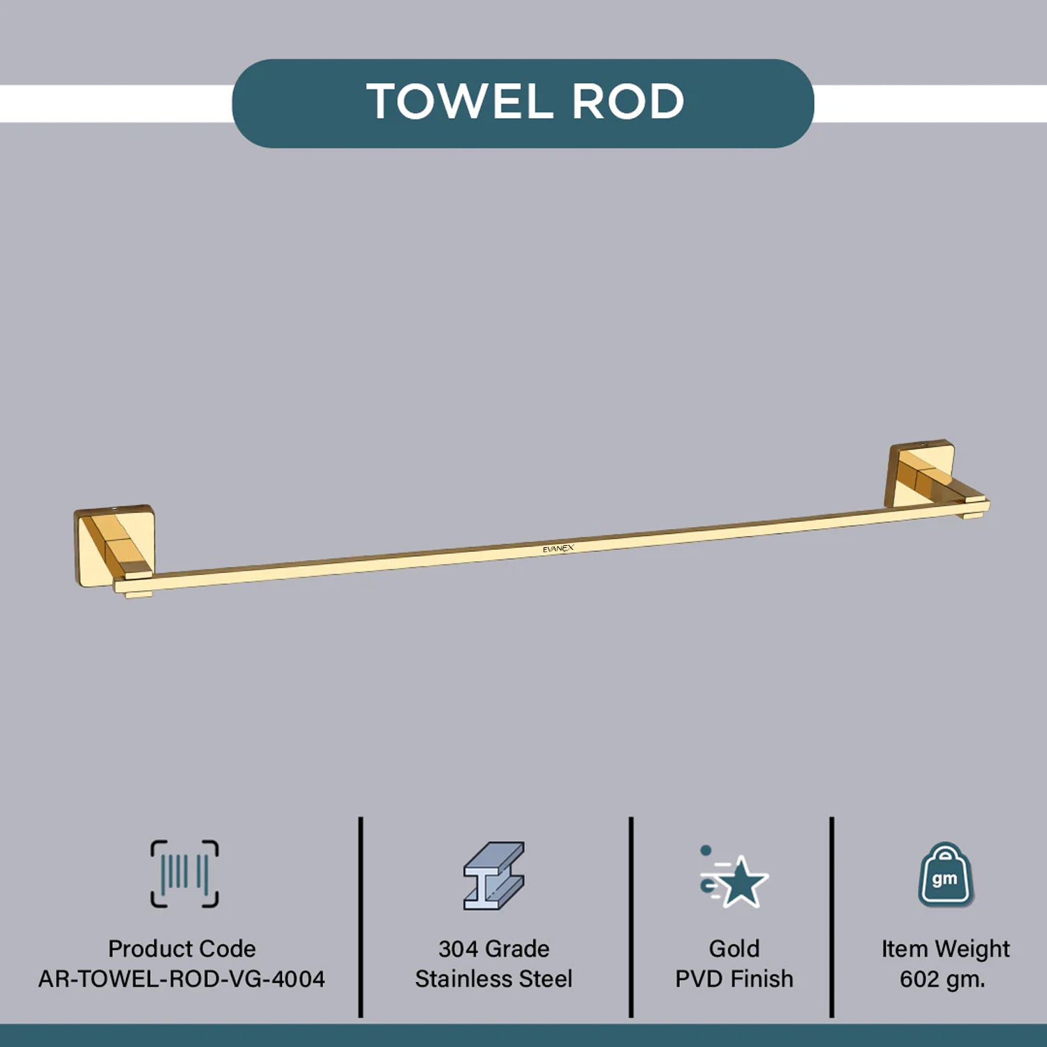 Evanex Stainless Steel Gold Towel Rod/Stand for Bathroom (61X7X4.6 CM)