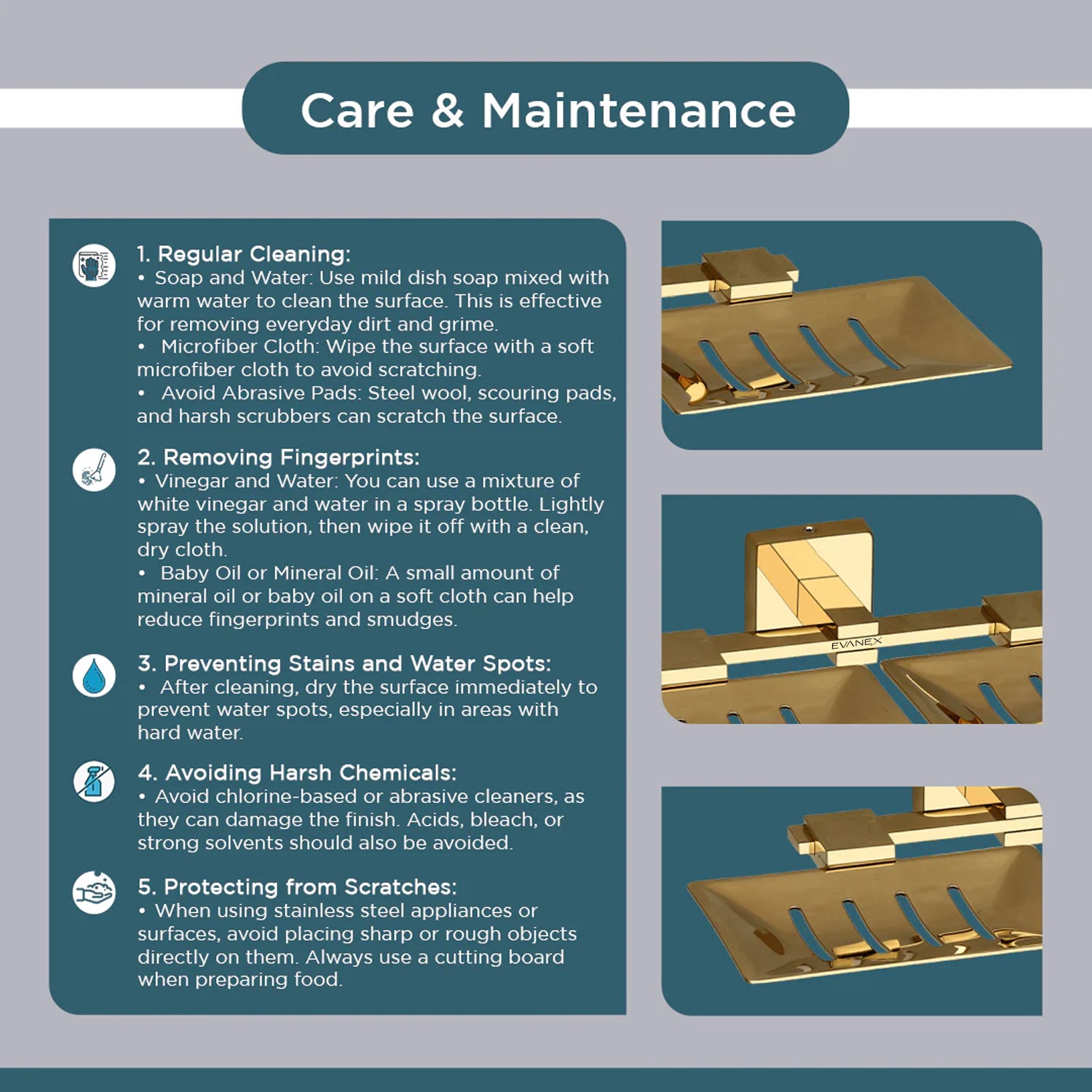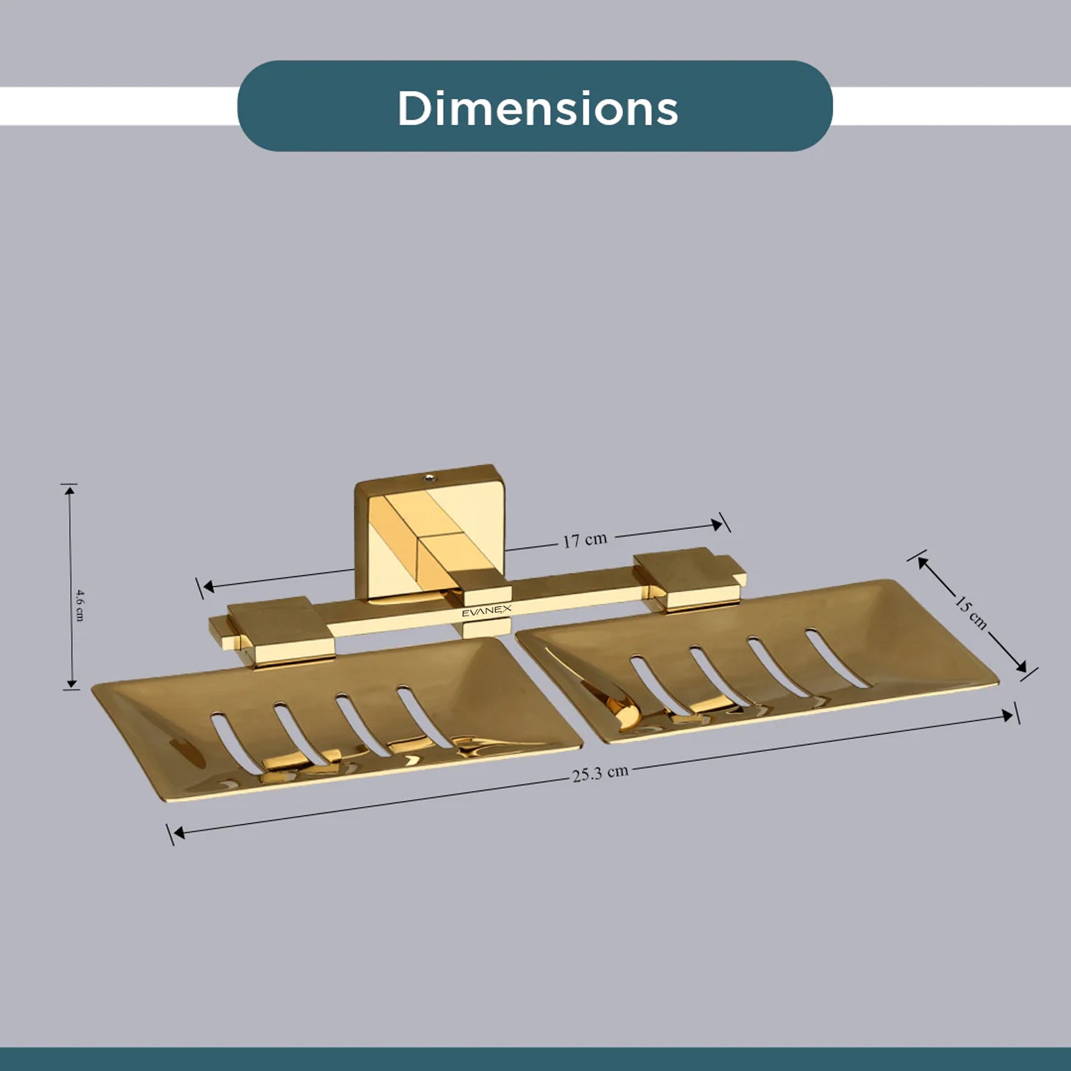 Evanex Stainless Steel Gold Twin Soap Dish for Bathroom (26X13X6.3 CM)