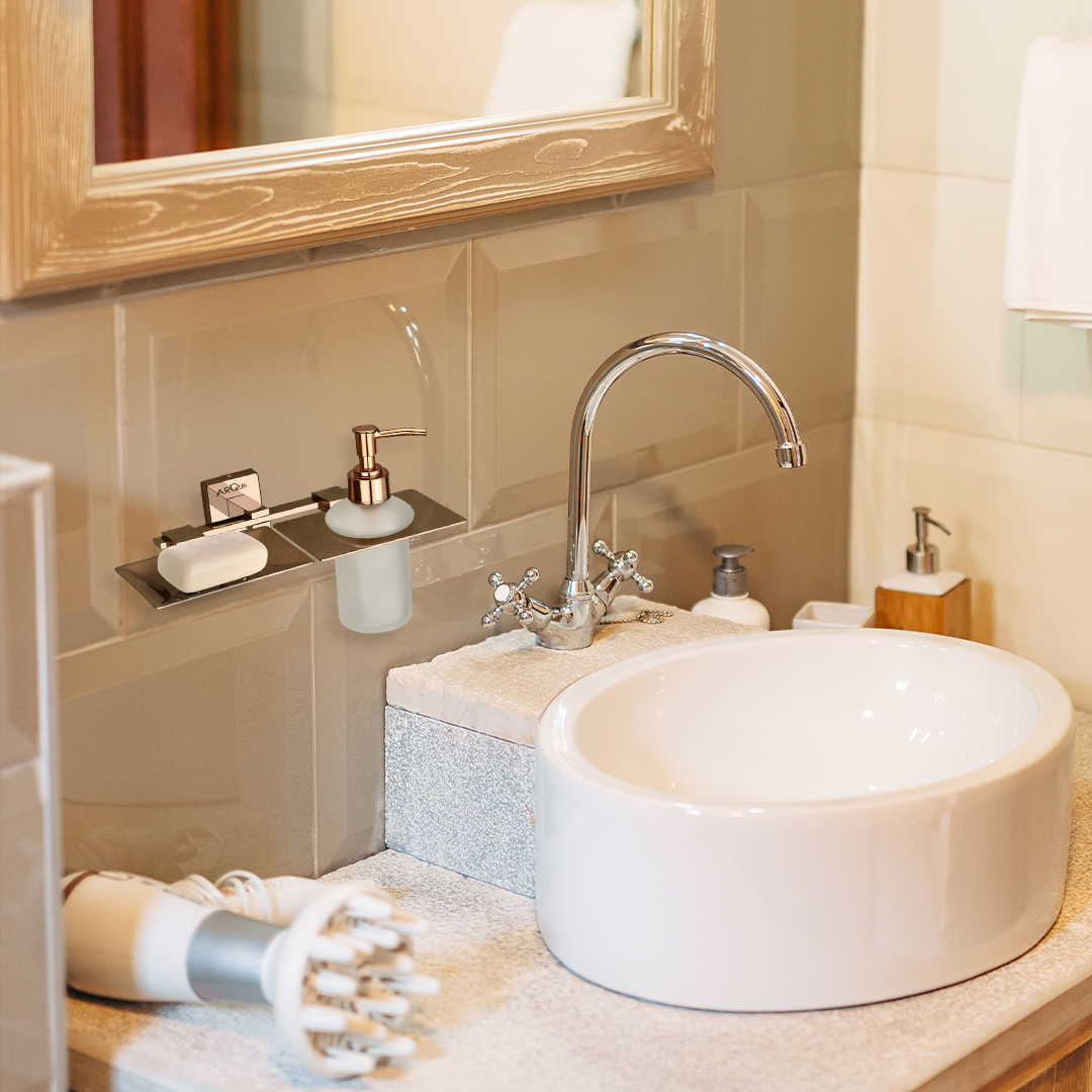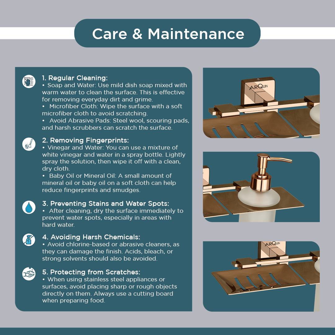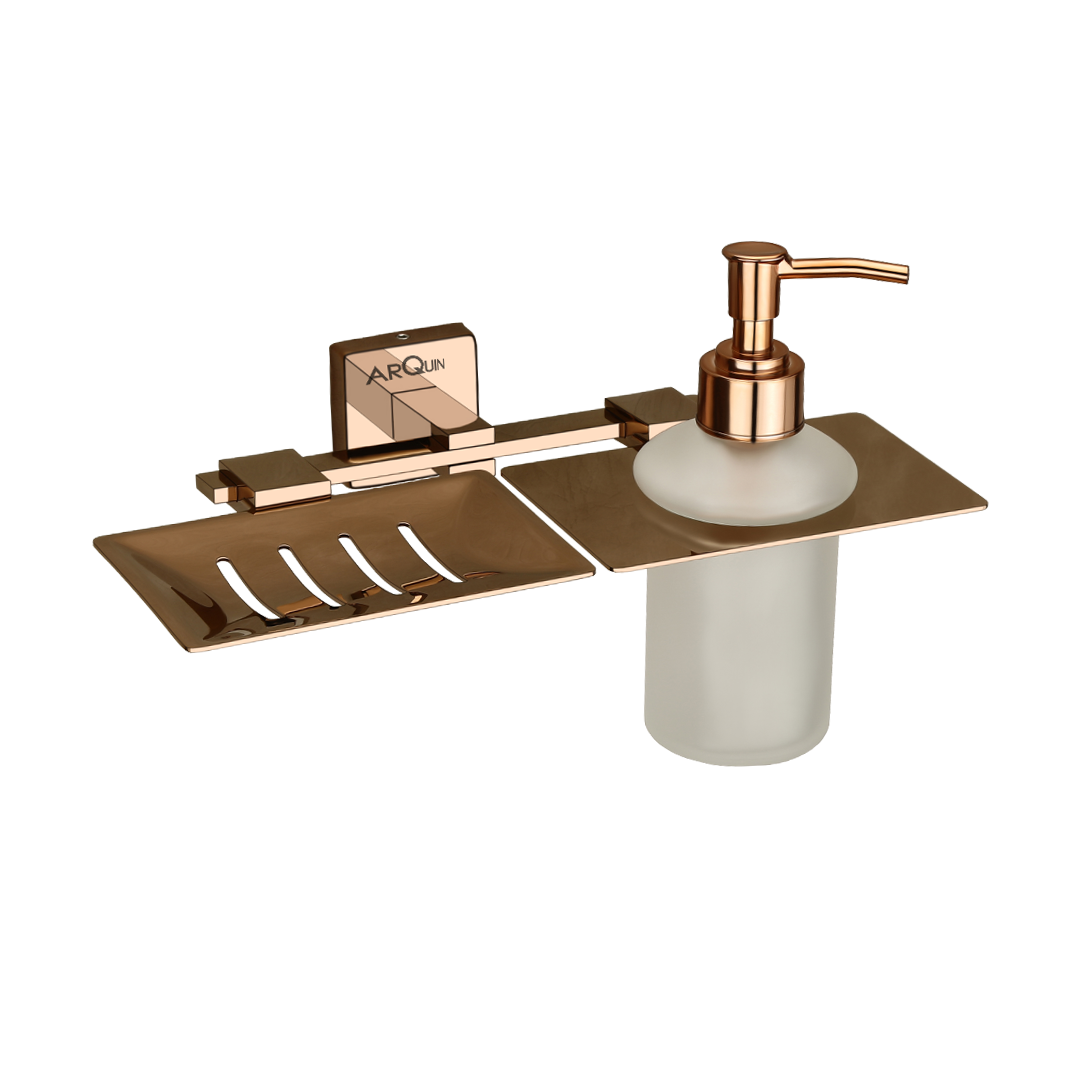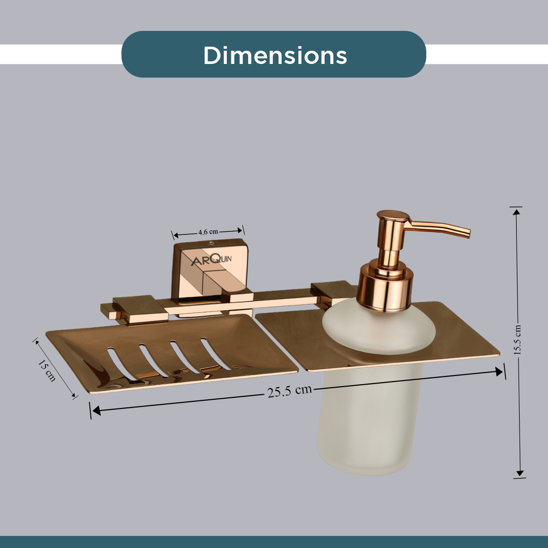 Evanex Stainless Steel Rose Gold Soap Dish & Liquid Soap Dispenser for Bathroom (25.5X15X15.5 CM)