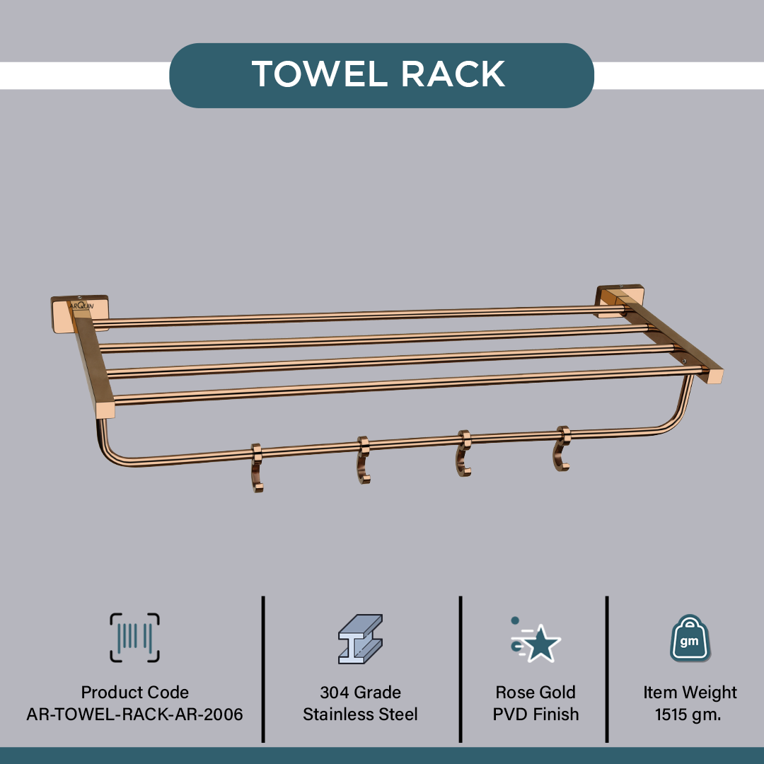 Evanex Stainless Steel Rose Gold Towel Rack for Bathroom (63.5X21.2X12.5 CM)