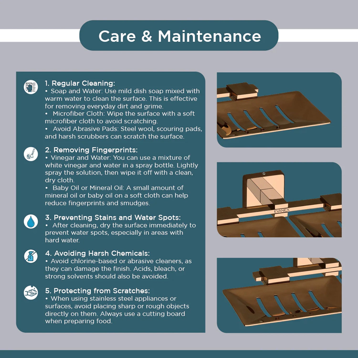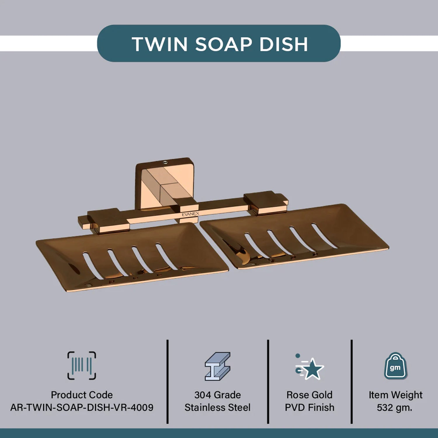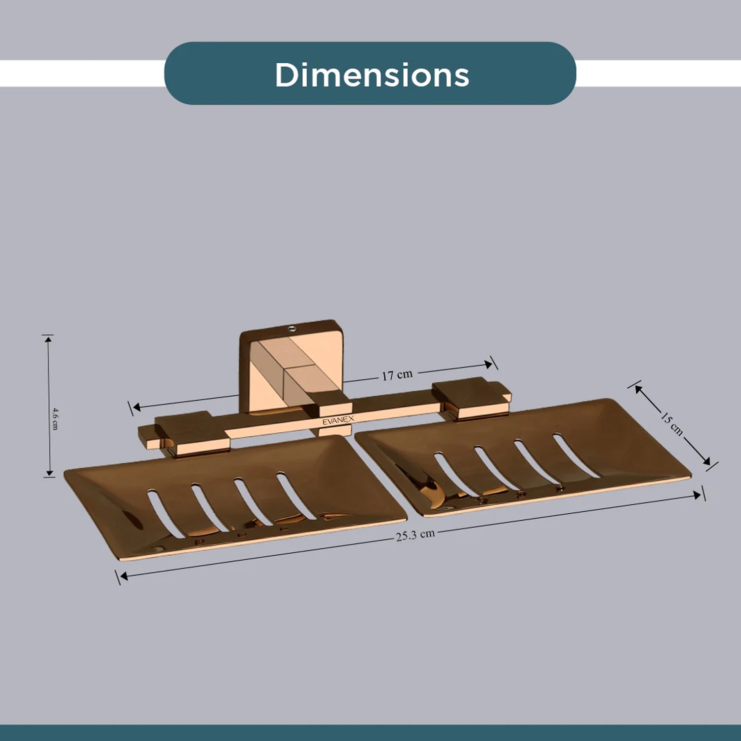 Evanex Stainless Steel Rose Gold Twin Soap Dish for Bathroom (25.3X15X4.6 CM)