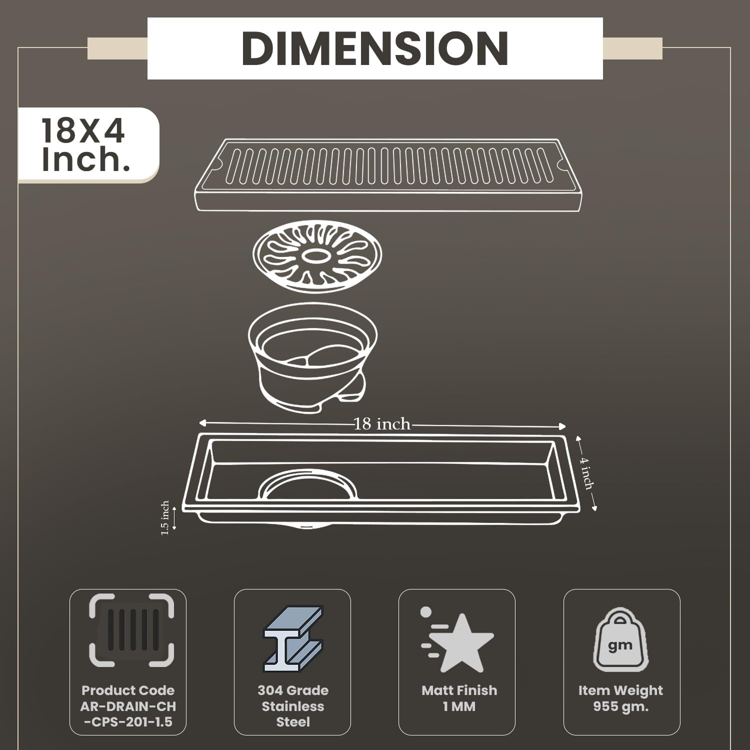 Sliver-Matt Shower Water Drain Channel with Cockroach Trap (18X4 Inches)