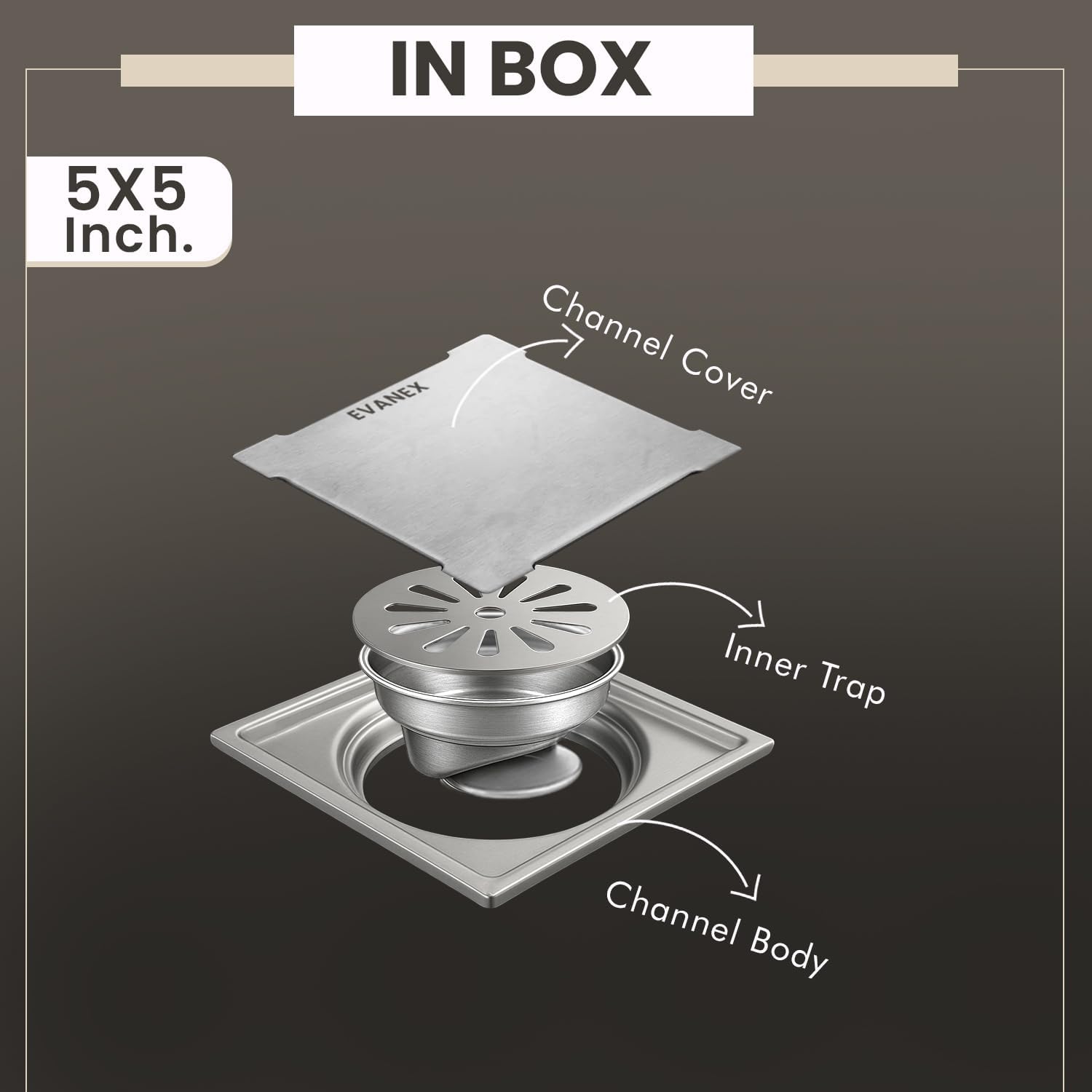 Sliver-Matt Square Floor Drainer with Cockroach Trap (5X5 Inches)