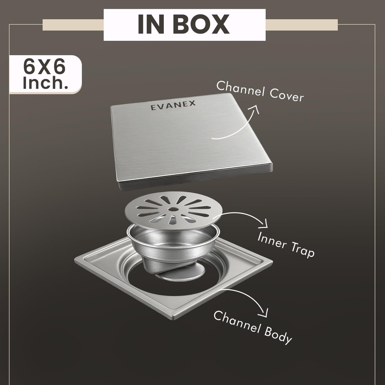 Sliver-Matt Square Tile Insert Floor Drainer with Cockroach Trap (6X6 Inches)